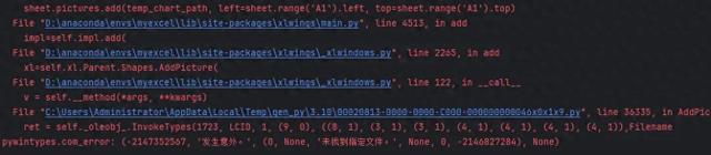 import matplotlib.pyplot as plt# 创建一个简单的图表fig, ax = plt.subplots()ax.plot([1, 2, 3, 4])ax.set_ylabel('some numbers')# 保存图表为 PNG 文件temp_chart_path = 'temp_chart.png'fig.savefig(temp_chart_path)import xlwings as xwimport os# 创建一个新的 Excel 工作簿app = xw.App(visible=False) # 不显示 Excel 应用程序wb = app.books.add()# 获取工作表sheet = wb.sheets[0]# 将图片插入到 Excel 中sheet.pictures.add(temp_chart_path, left=sheet.range('A1').left, top=sheet.range('A1').top)# 保存 Excel 文件output_excel_path = 'output_with_chart.xlsx'wb.save(output_excel_path)app.quit()# 删除临时图片文件os.remove(temp_chart_path)哪位大佬帮忙运行下这段代码?.pictures.add这里一直报错,不明原因
