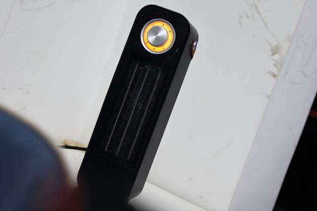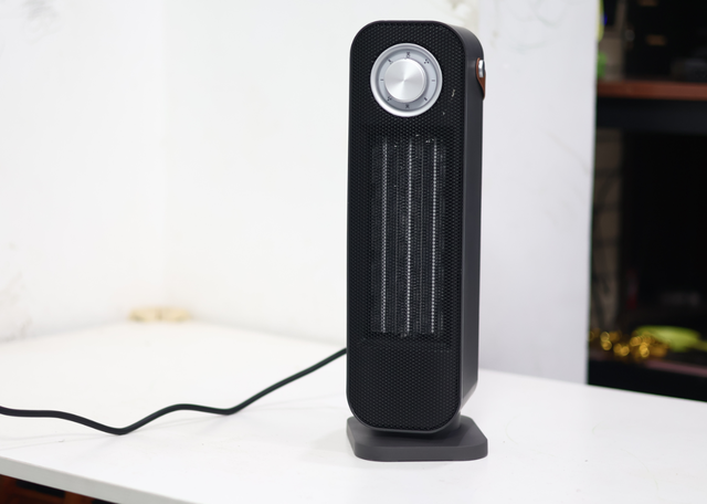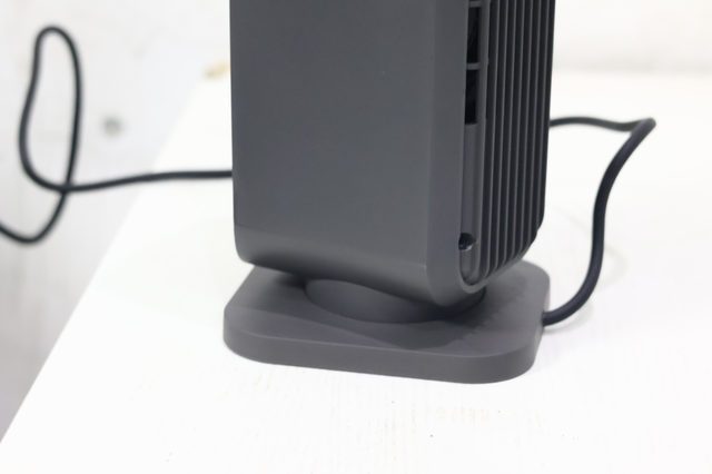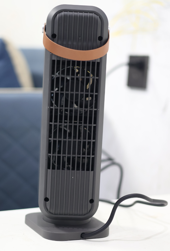 初见WarmX,便被其精致的工业设计所吸引。不同于传统暖风机笨重的"傻大粗"造型,它采用黑灰配色方案,既显科技感又不失优雅。整机尺寸仅比普通桌面风扇略小,却能稳稳立在床头柜或茶几上,没有传统取暖设备带来的视觉压迫感。机身上的磨砂质感与圆润边角处理,让这个取暖器无论放家里哪个位置都可以百搭。