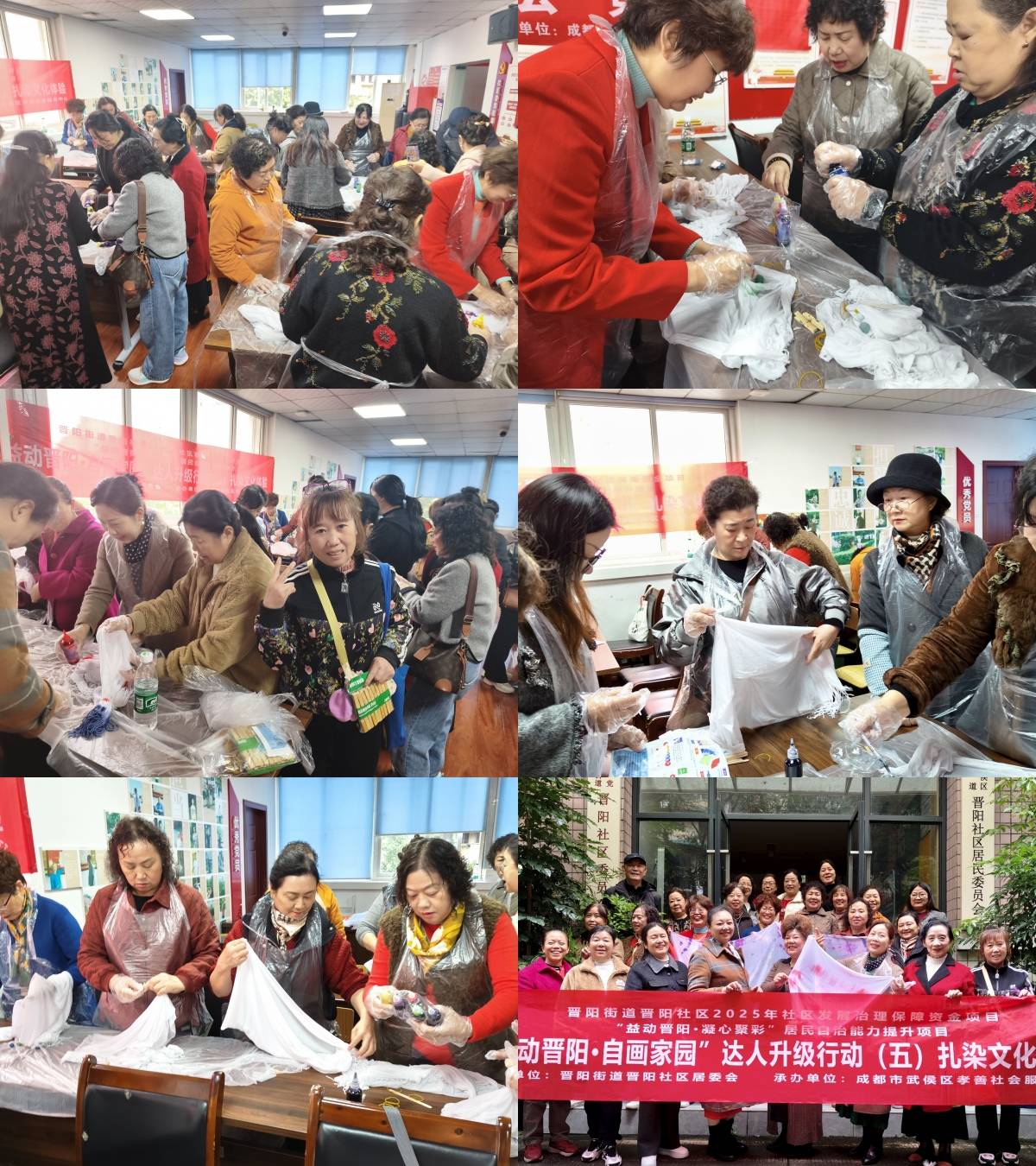 2025年10月21日上午,晋阳社区居民委员会携手成都市武侯区孝善社会服务中心在社区三楼会议室成功开展“益动晋阳·自画家园”品牌营建项目-“益动晋阳·自画家园”达人升级行动(五)扎染文化体验活动,本次活动由晋阳社区2025年社区发展治理保障资金支持,通过“益动晋阳·自画家园”文艺宣传队伍成员线上线下发布活动通知,共吸引了31名热爱传统文化的居民积极参与。