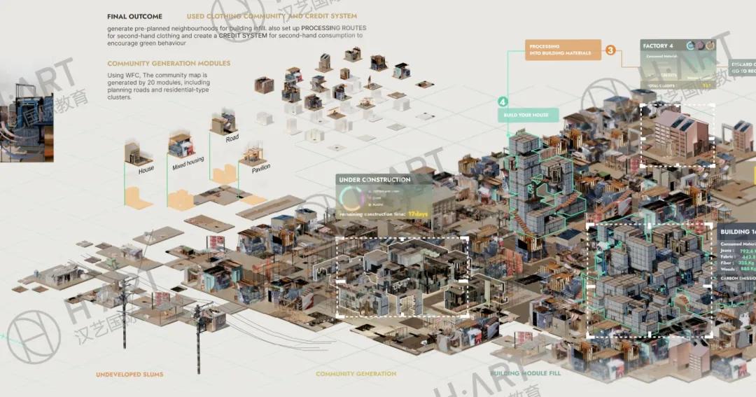 以汉艺L同学的小组项目为例,他们发现非洲肯尼亚地区为快消工厂提供衣服原料,但居民经济能力无法负担起这些产品,只能进口二手衣服来满足日常需求,但其中旧的衣物只能进行填埋,影响了整个国家的土地资源利用。
