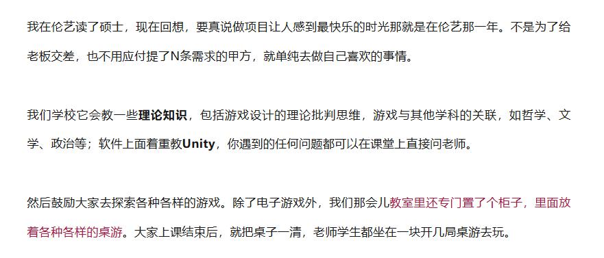 汉艺国际教育 C同学 获 伦敦艺术大学 LCC 游戏设计 MA 现就职于 国内大型车企 VR开发