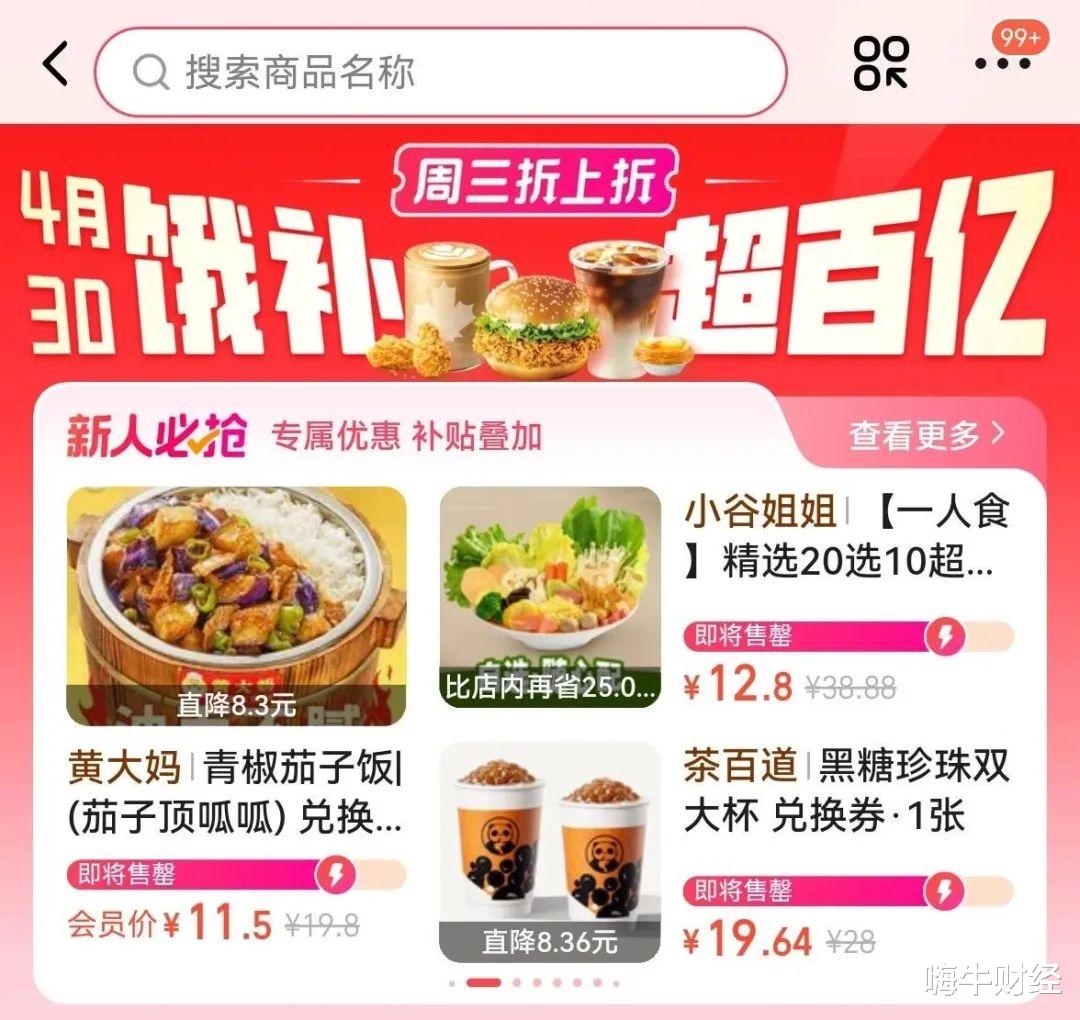 五一假期前一天,饿了么官宣“饿补超百亿”正式启动,没有花哨的营销噱头,用户在饿了么APP搜索“超百亿”,即可享受各种福利补贴。