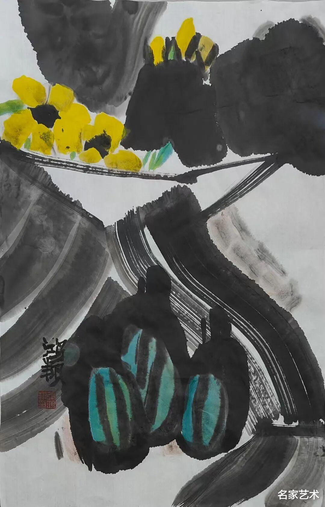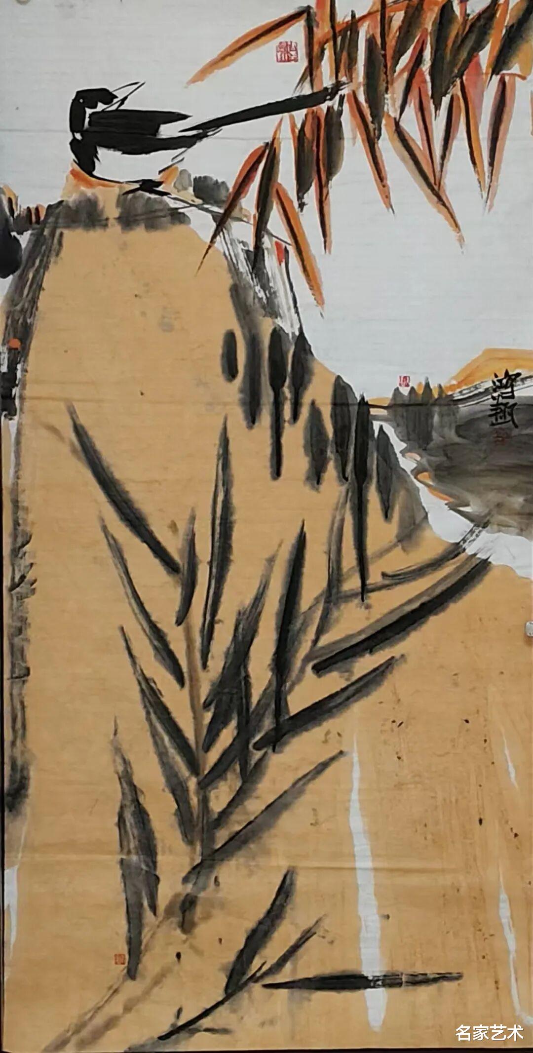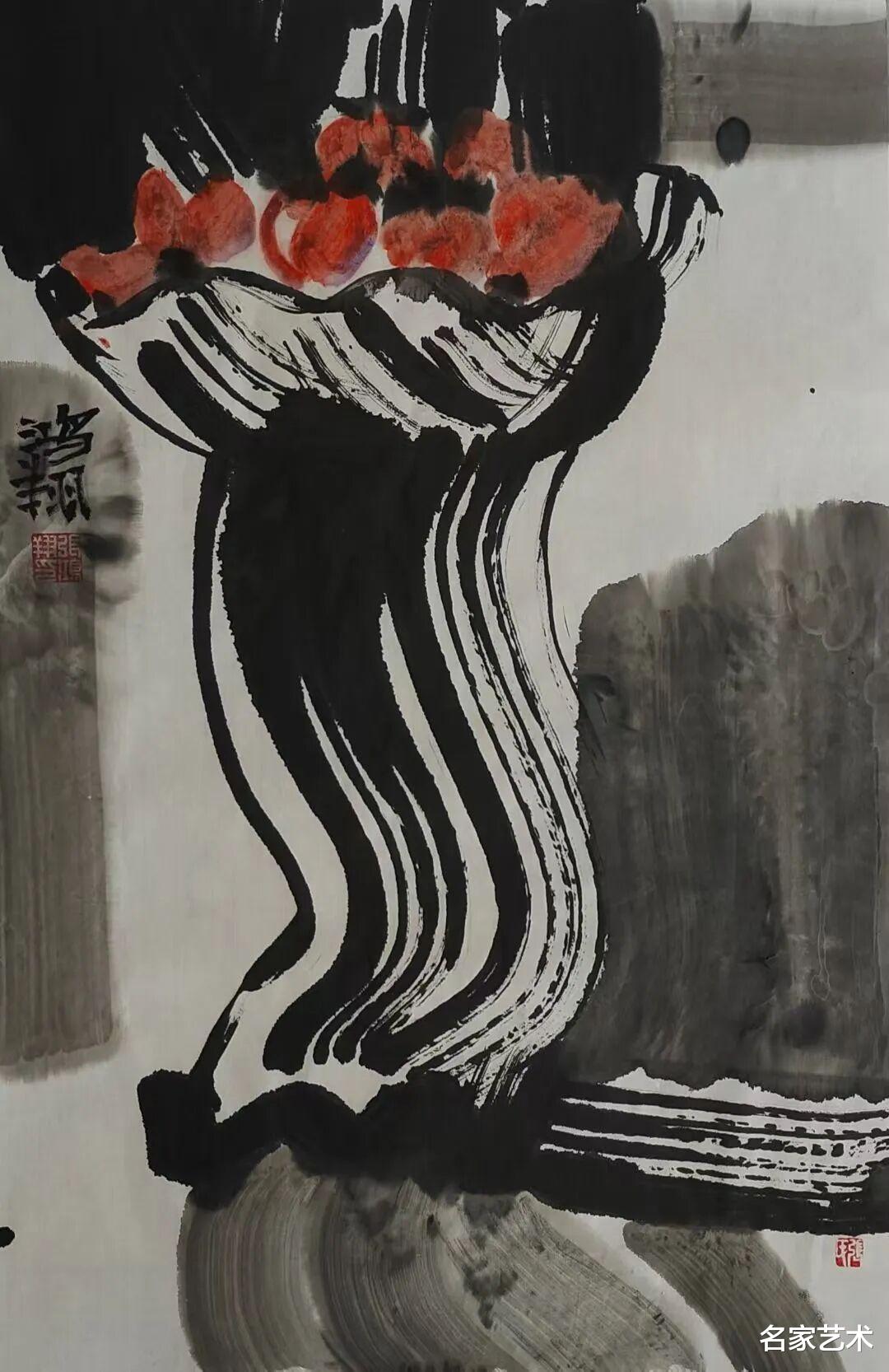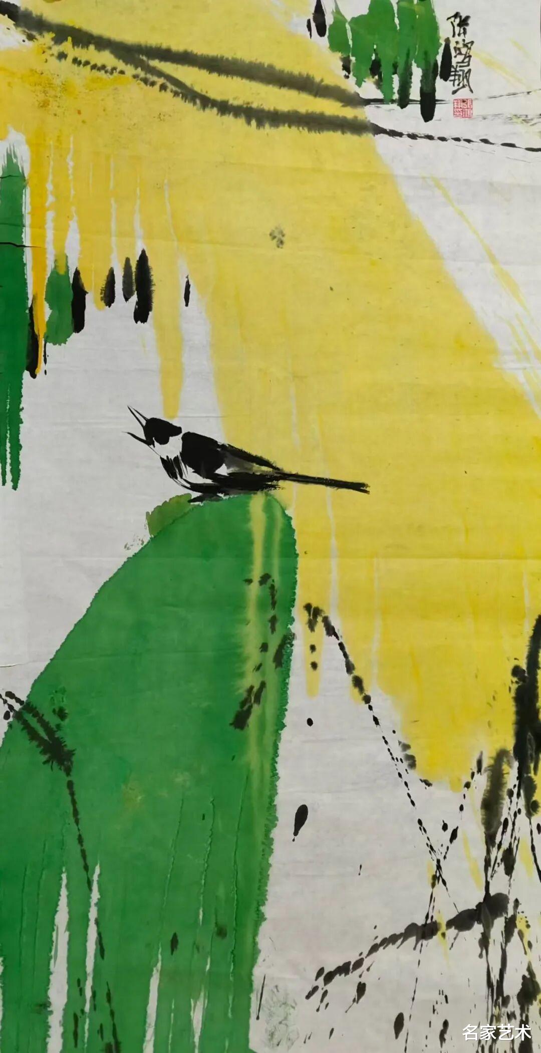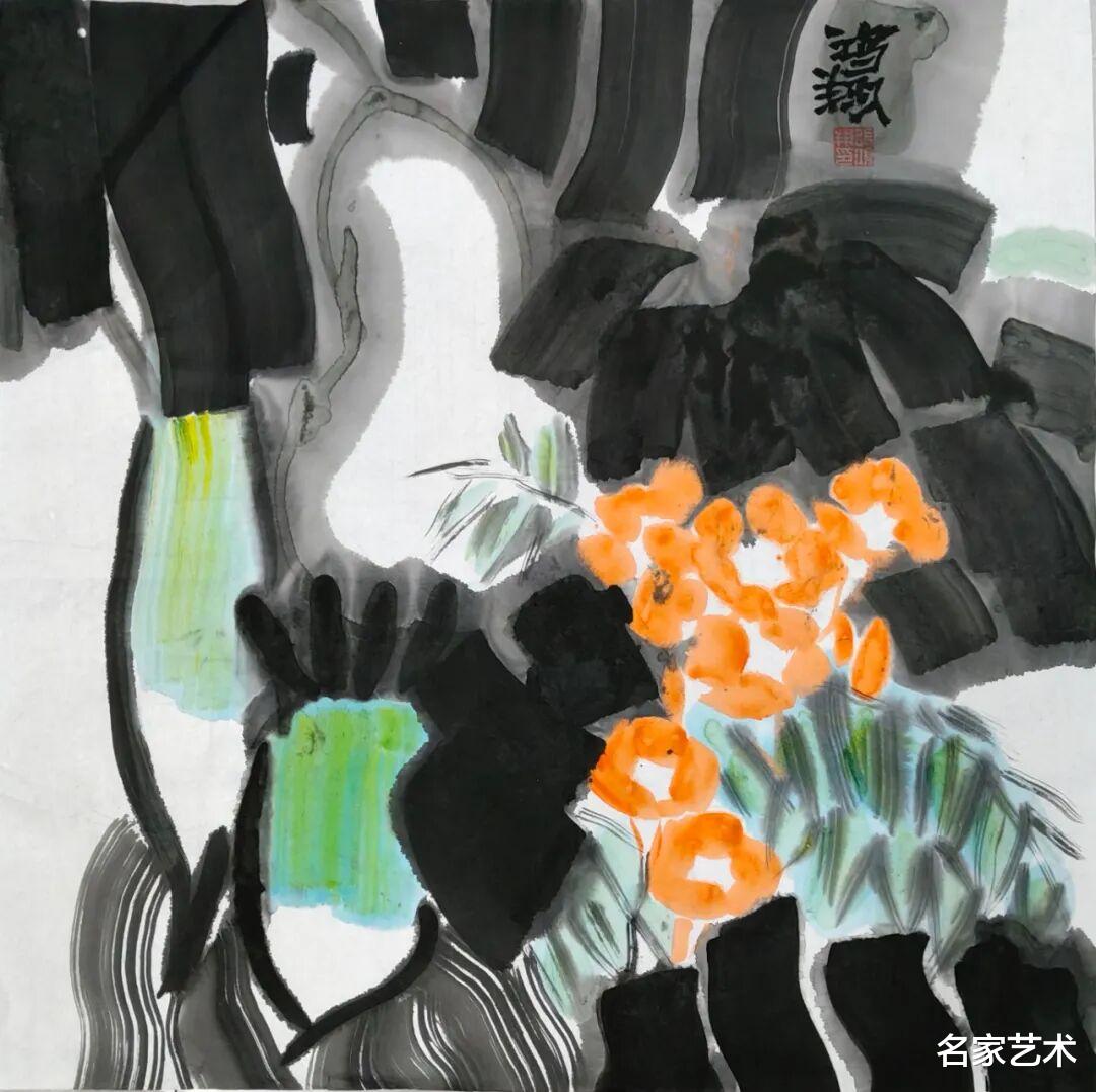 但张鸿翔另辟蹊径,大胆地将现代绘画的构成意识引入,在他的作品中,不再强调传统的笔墨,“鸟”只是作为他的一个绘画符号,通过黑白灰的大色块,将线和面穿插其中,很有力度,从而独具一格。他的作品,具有鲜明的时代气息和明朗强烈的风格,令我不由自主地想起林凤眠和吴冠中先生的画面。我想,这或许与张鸿翔先生的知识结构、思想觉悟和艺术积累分不开。之前,他画西画,而后主攻国画,与他目前从事的花鸟画教学紧密联系。