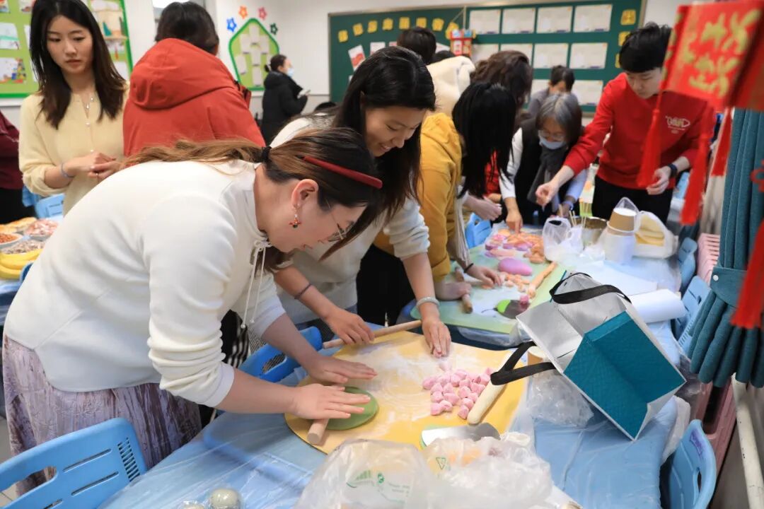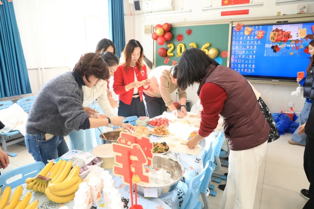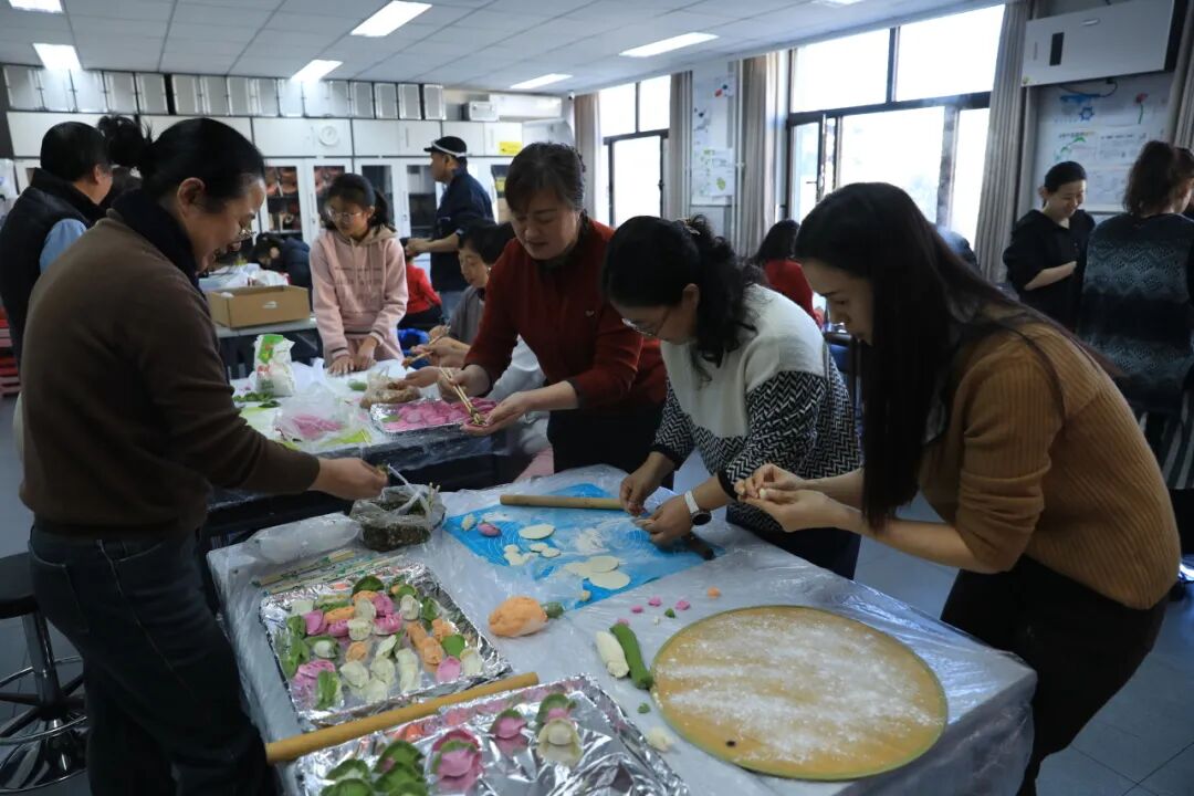 在“巧手包饺子”任务中,老师们捋袖上阵,和面、擀皮、包馅,动作娴熟,笑语不断。一个个饱满的饺子在手中诞生,最终汇聚到一起,象征着万泉大家庭的团圆与美满。