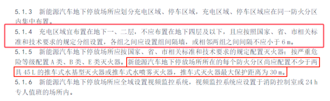 图/《新能源汽车地下停放场所消防安全管理规范》部分内容