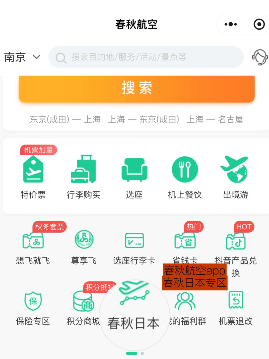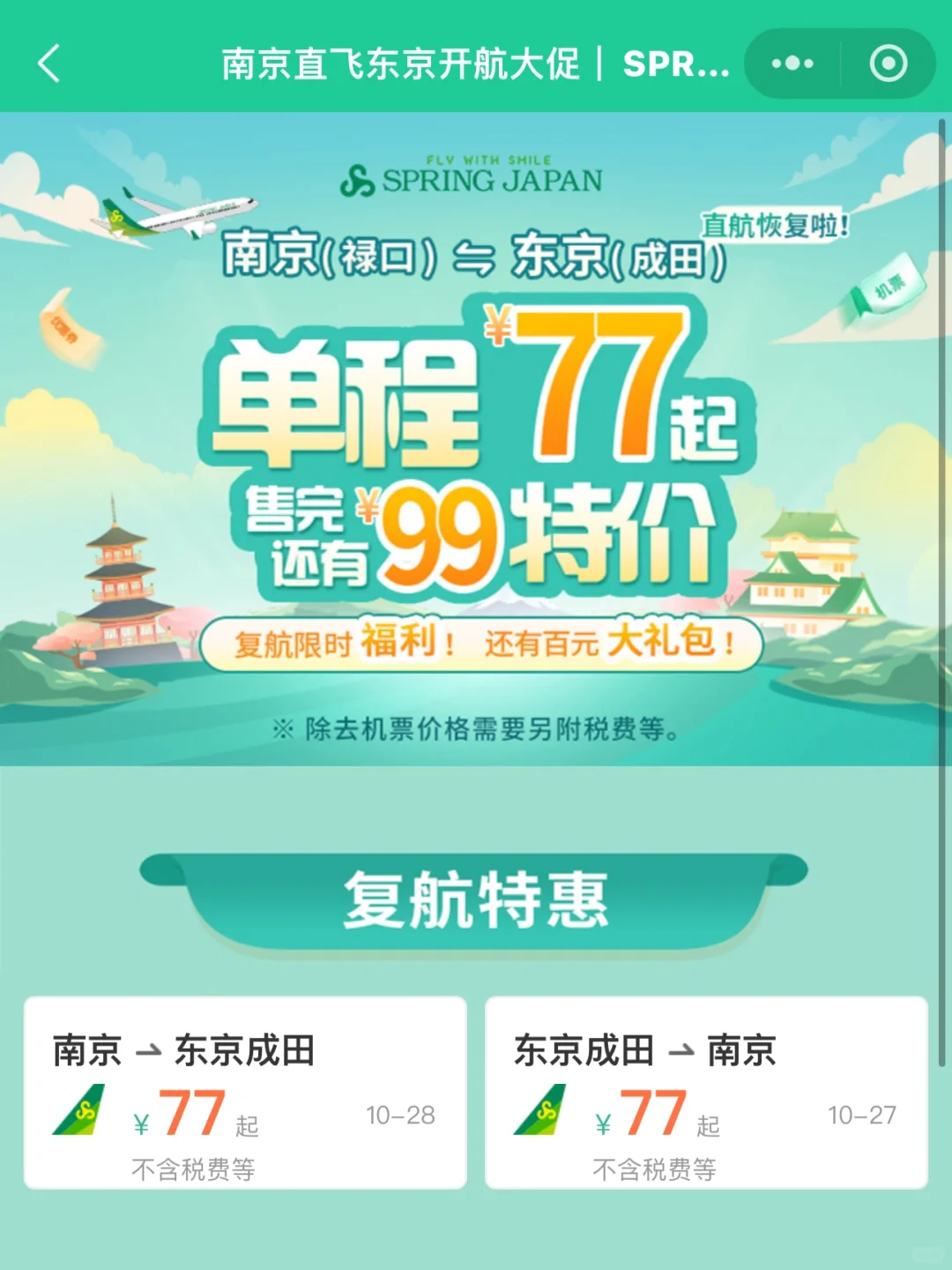 ✅春秋日本现在开了南京到东京的直飞航线了!!在春秋航空点击春秋日本专区就能看到春秋日本的航线!现在直飞只要77元起~还有复航特惠礼包可以领~很适合南京到东京的这条旅游航线优惠力度很大~~疯玩七天
