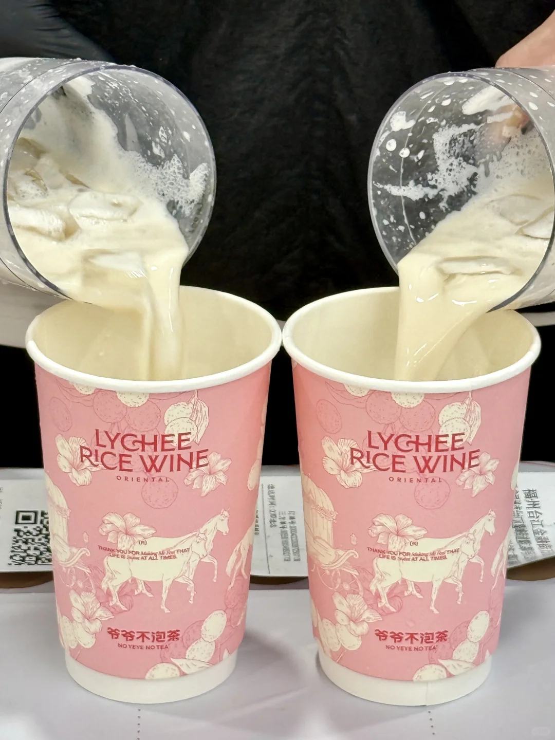 里面加了孝感米酿!!还有升级版的凤凰单丛茶底!再加上漳浦乌石荔枝汁和牛奶,喝起来清爽细腻!!嘴里都是荔枝的香气和茶香奶香气!🍃而且桂花冻冻敲q弹~