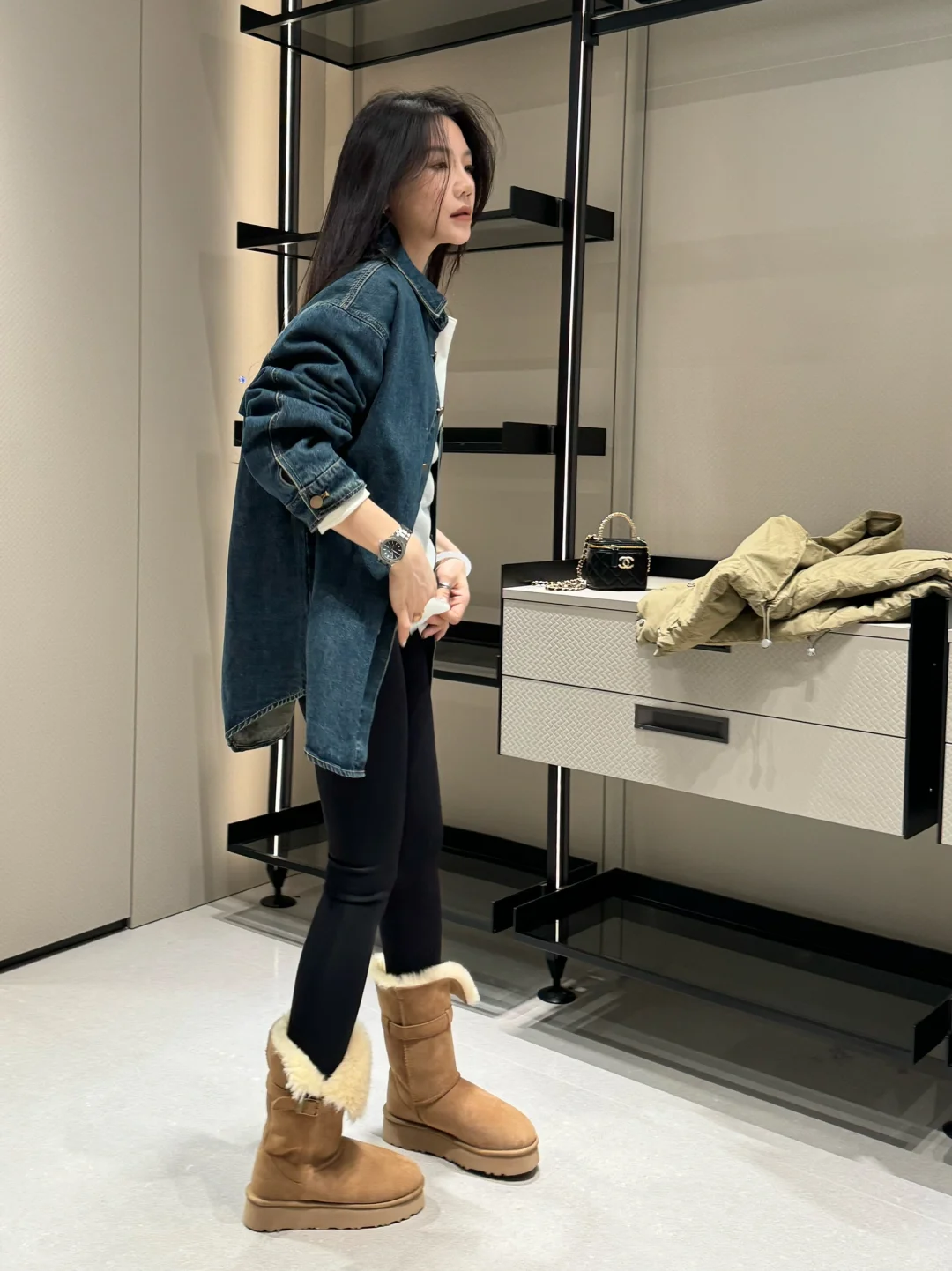 喜欢这套装 拆分穿 衬衫也太好看了吧 雪地靴经典色看不腻穿不腻 本人拍摄 禁止盗图