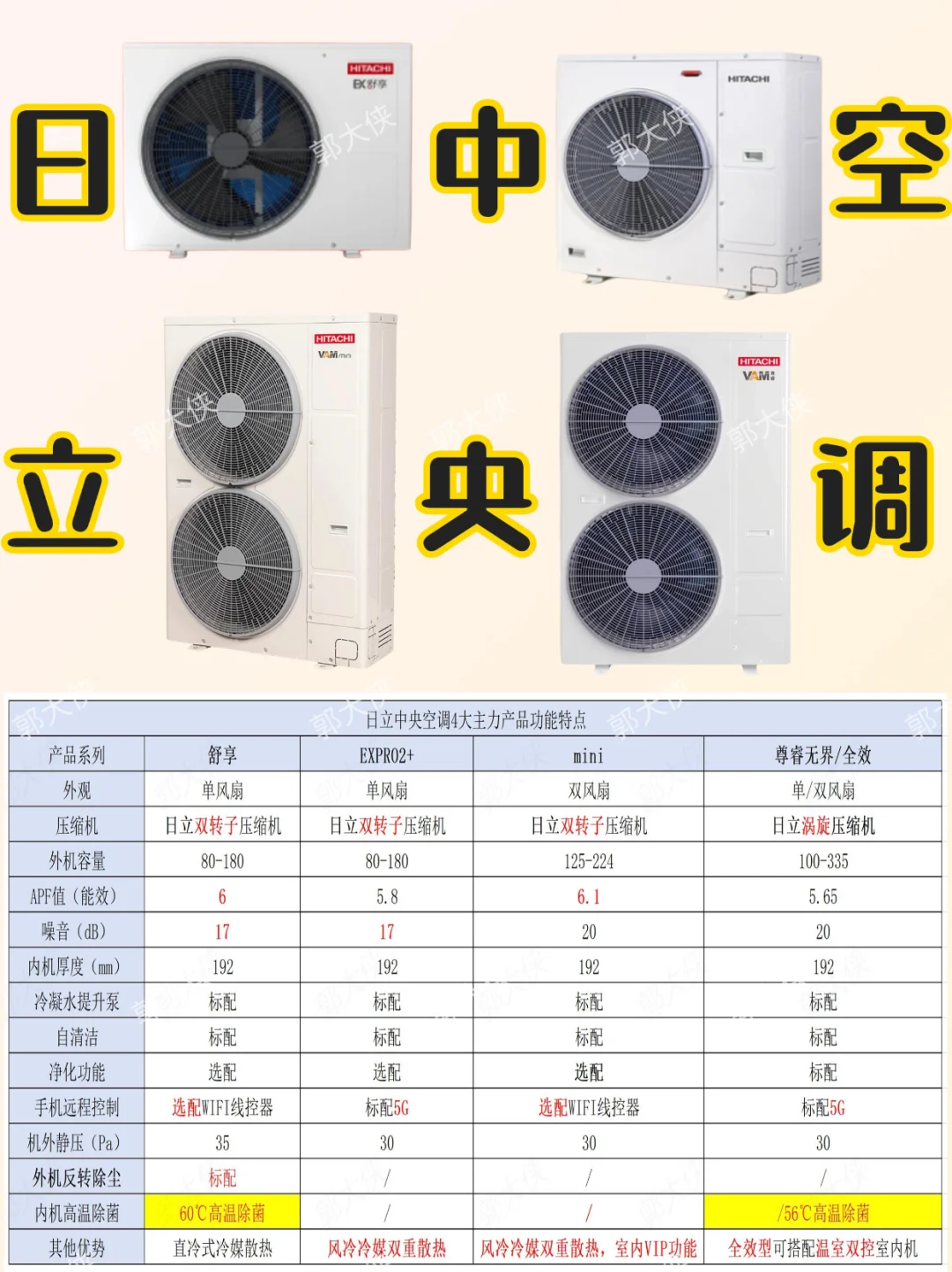 全系列涡旋压缩机是z大的卖点,尊睿有无界和全效之分,全效系列可以搭配温室双控的室内机实现温湿度独立控制,更高端一些。这个系列作为日立的高端,日立专列的涡旋压缩机等核心技术都用在了上面,预算够的话直接冲就行了。