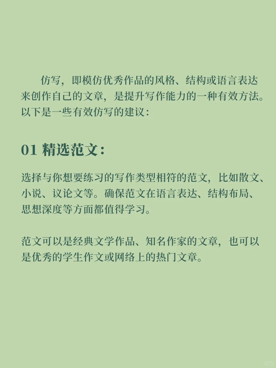 仿写,即模仿优秀作品的风格、结构或语言表达来创作自己的文章,是提升写作能力的一种有效方法。以下是一些有效仿写的建议: