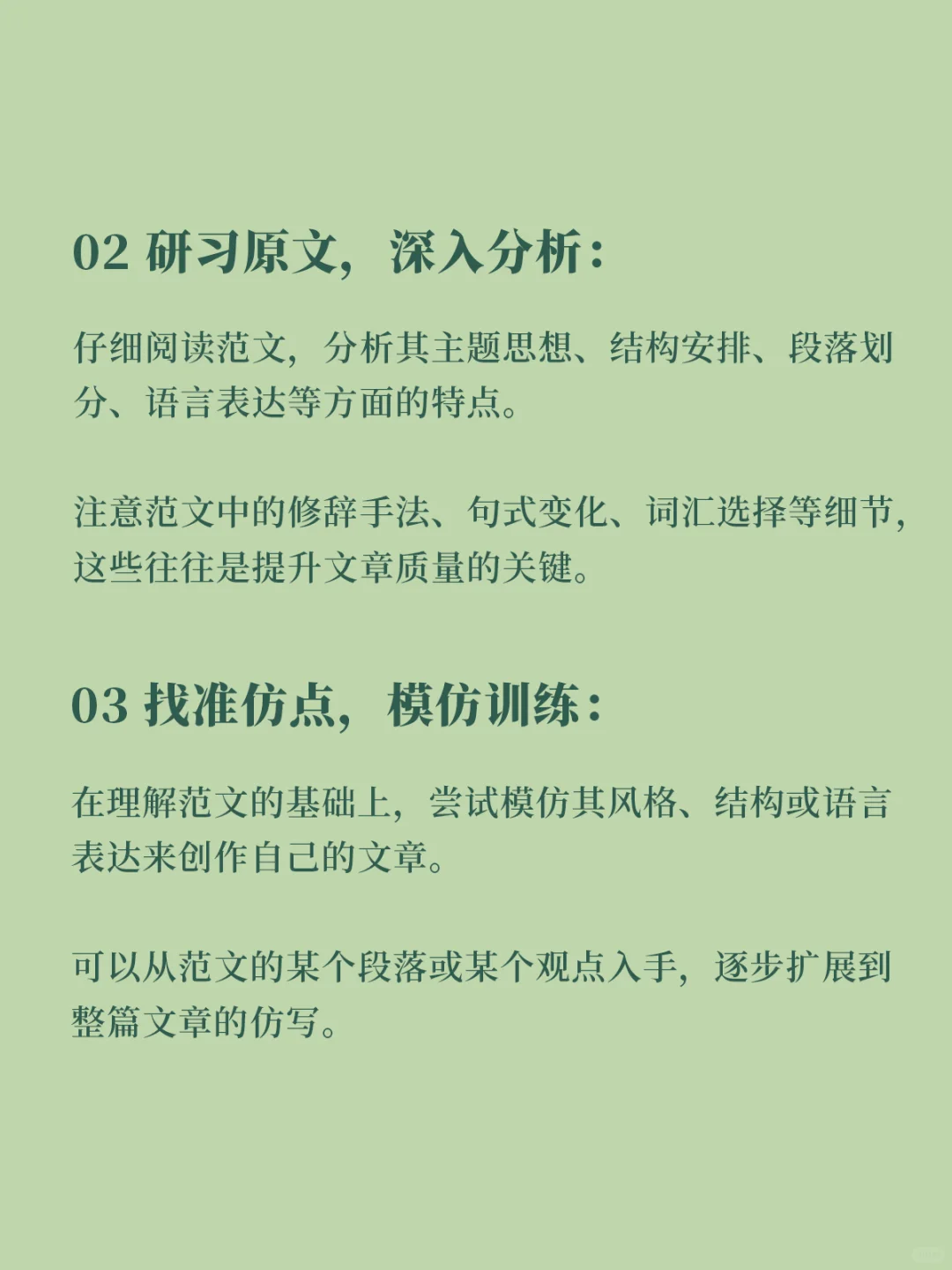 注意范文中的修辞手法、句式变化、词汇选择等细节,这些往往是提升文章质量的关键。