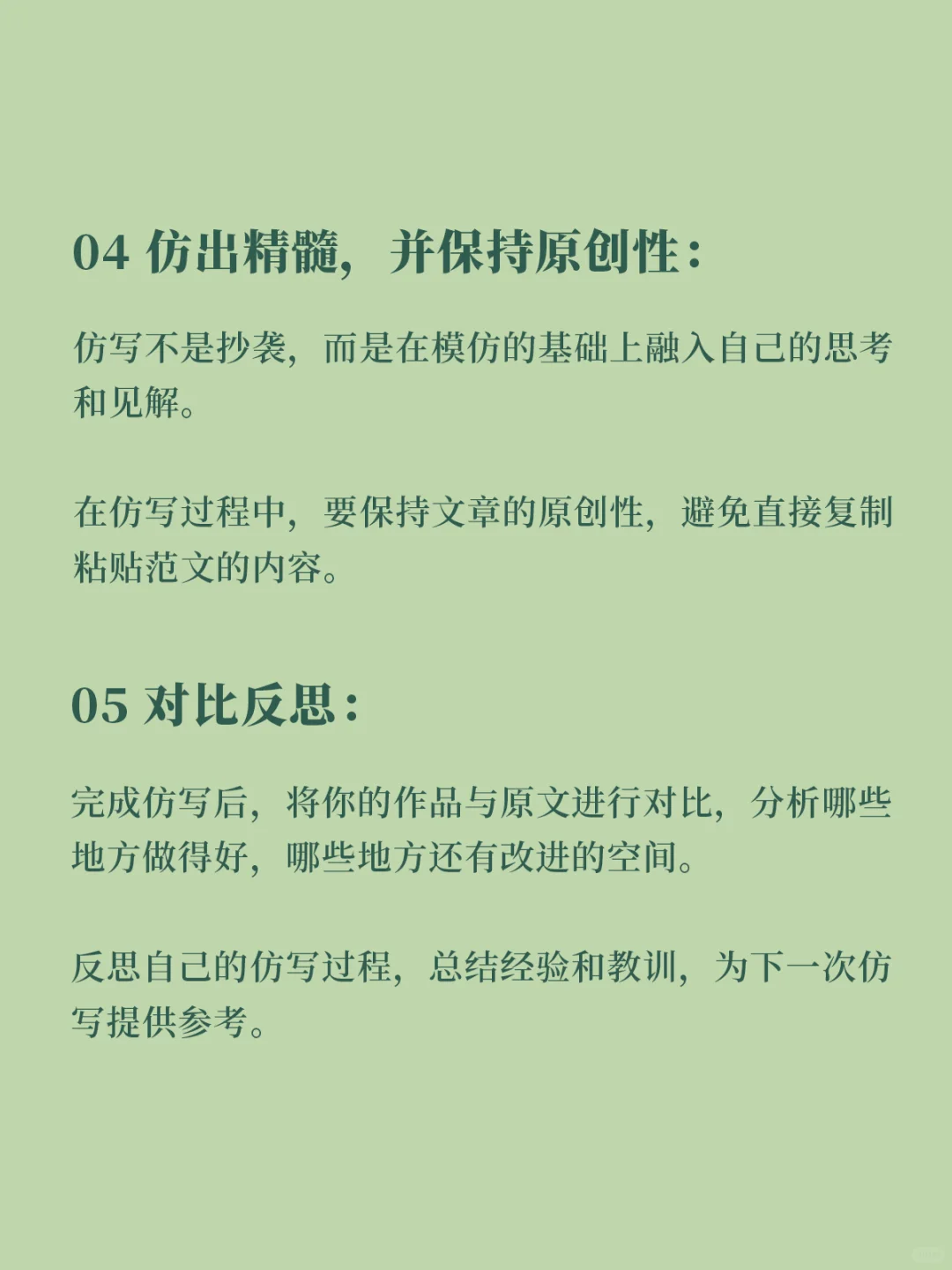 反思自己的仿写过程,总结经验和教训,为下一次仿写提供参考。