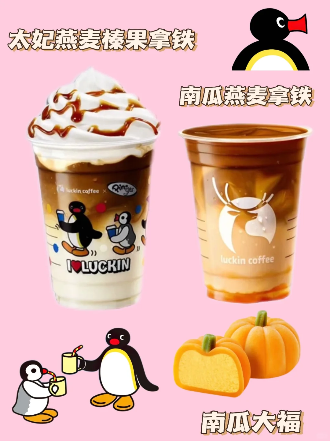 啊啊啊PINGU联名的第二波来了!! 会出3款新品和更多的联名周边!! 手机支架和联名泡泡贴真的巨可爱啊啊啊❗ - ✔南瓜燕麦拿铁 ✔太妃燕麦榛果拿铁 ✔太妃榛果拿铁 ✔南瓜大福 - 其中南瓜燕麦拿铁和太妃燕麦榛果拿铁都是用OATLY咖啡大师燕麦奶的诶!!🥛 这款燕麦奶真的巨好喝!口感柔滑又香浓!!做咖啡肯定好喝的啊!!一整个期待住了!!🥹