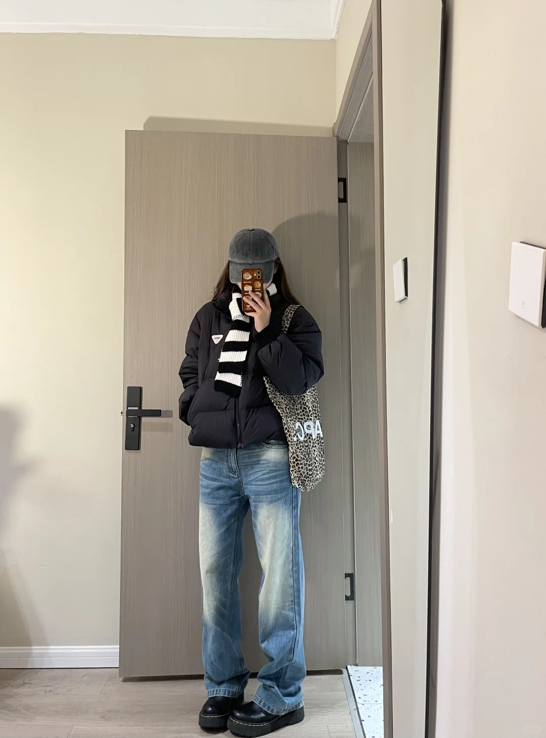 黑色羽绒➕复古蓝直筒裤 美式复古是我的菜!