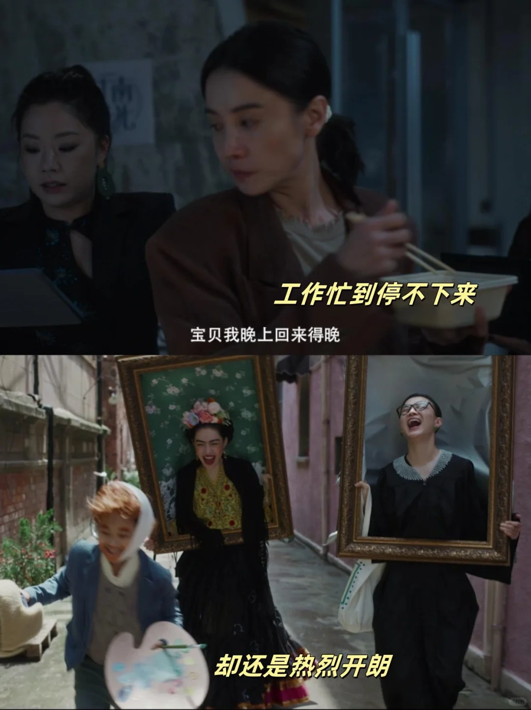 预告里印象特别深的是王铁梅可以在工作的时候端着盒饭忙到停不下来,也可以和女儿朋友奔跑大笑到停不下来,就还是曾经自由的少女一样,原生的气血感扑面而来[派对R]