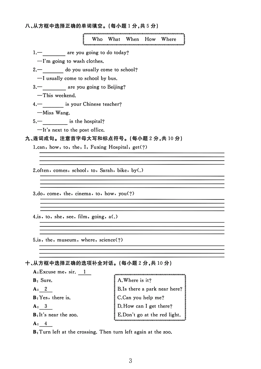 人教版六年级英语上册期中测试卷 3