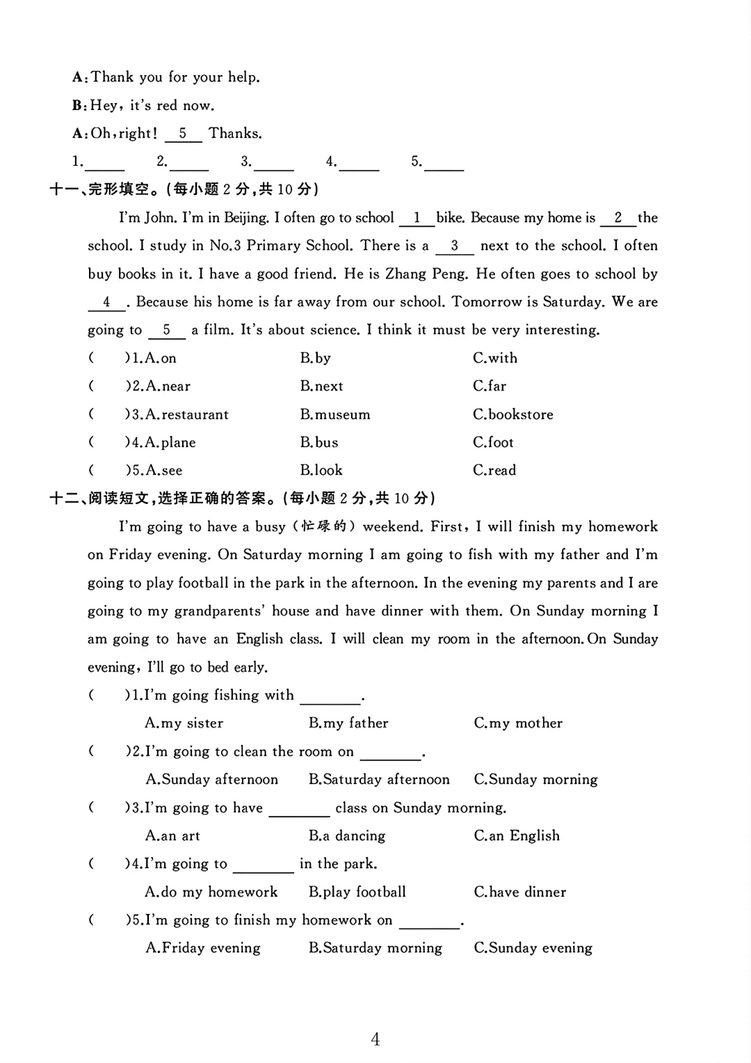 人教版 六年级上册英语 期中考试 期中试卷 电子版可打印 试卷