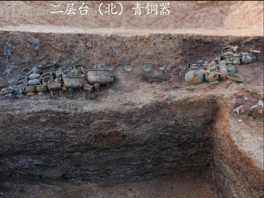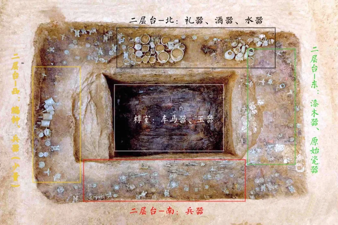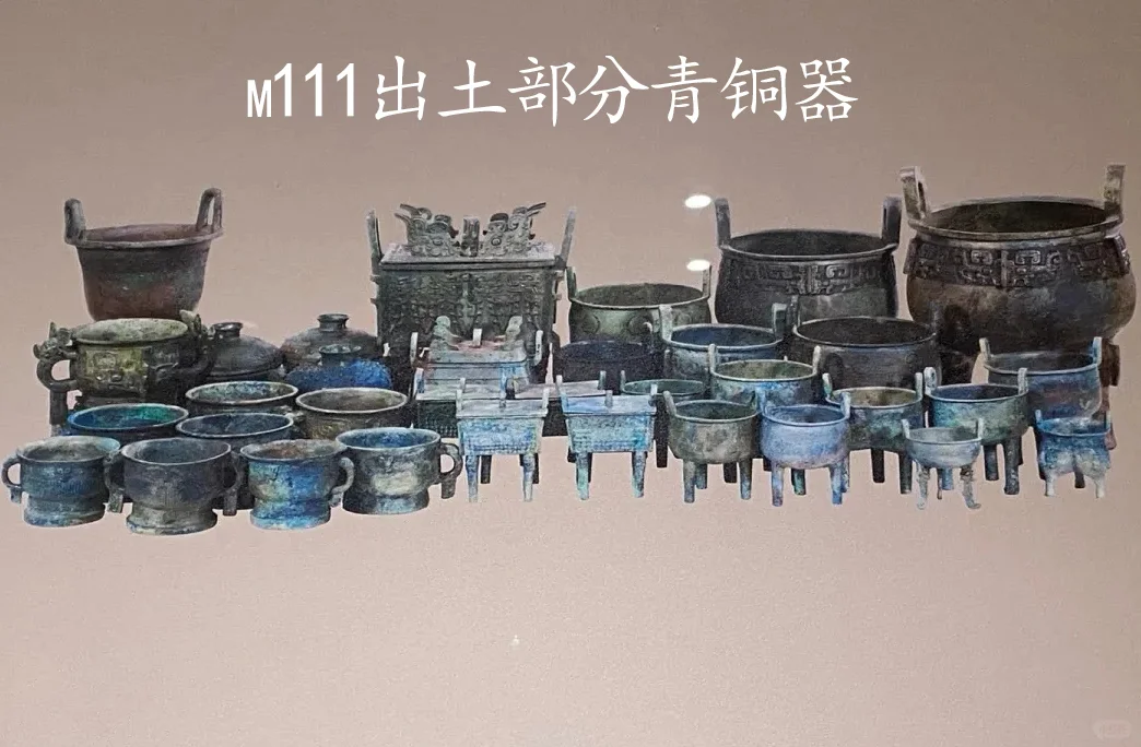 该墓共出土铜、原始瓷器、玉、陶、漆木、金、象牙等质地的器物2800余件,其中青铜礼器60余件。