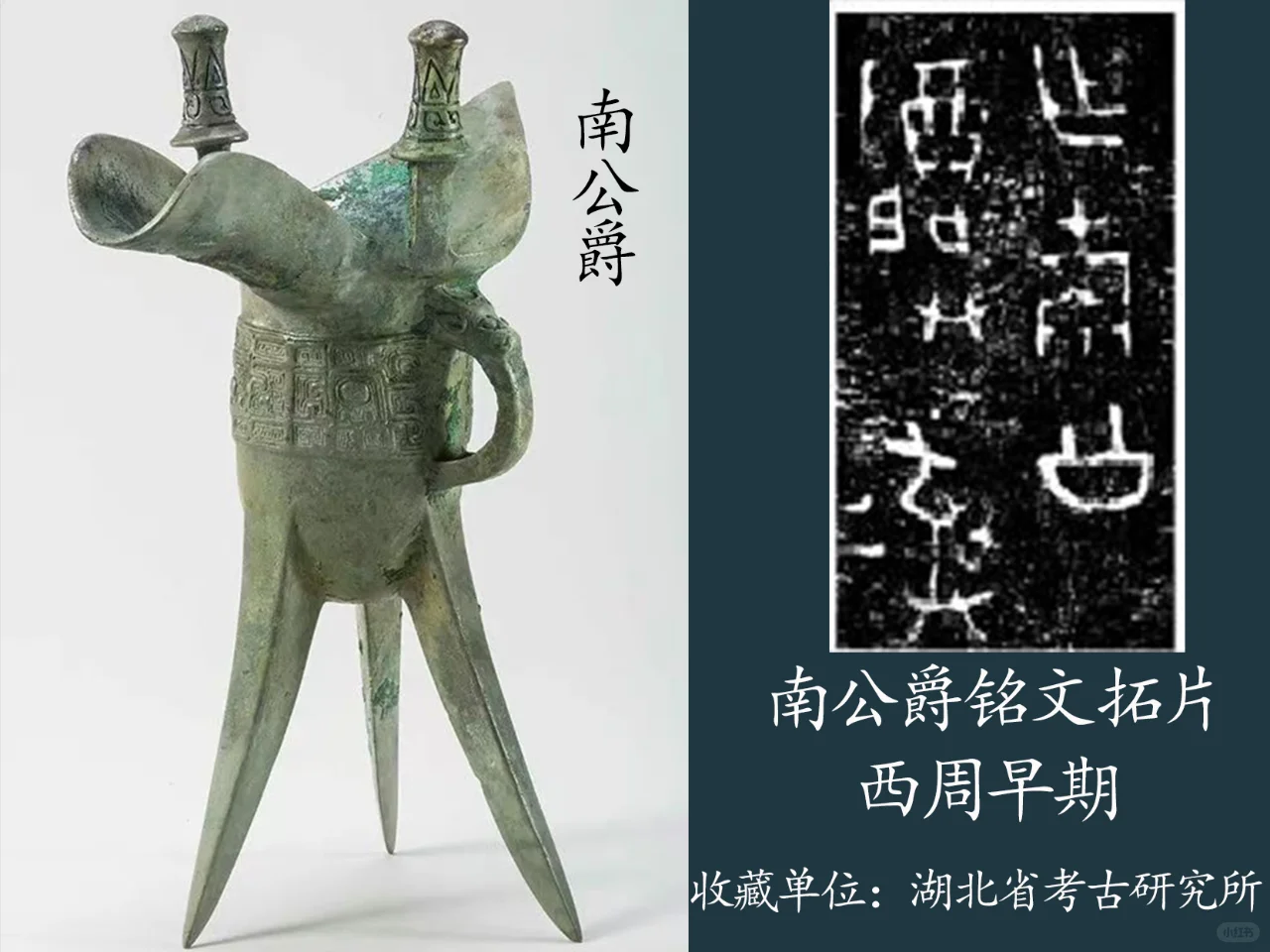 铭文:作南公作宝彝” ,即该青铜爵的器主爵位是:公爵。