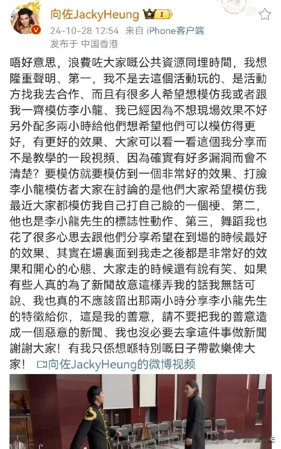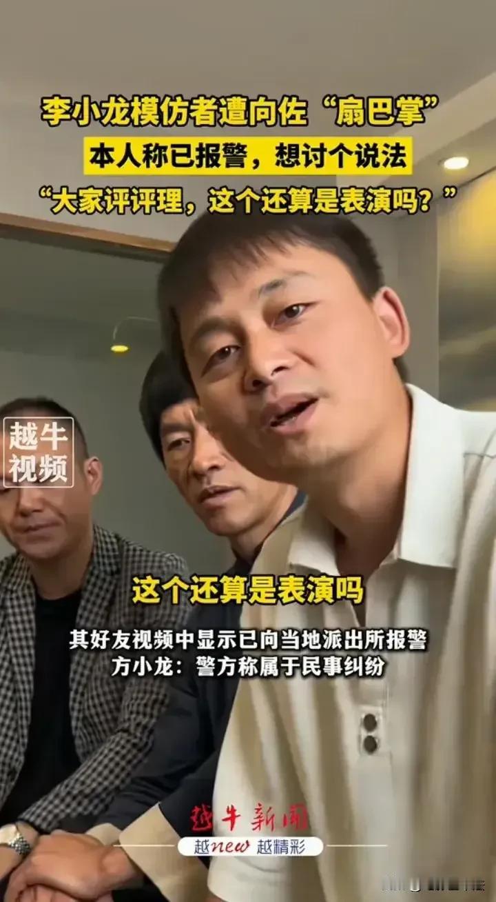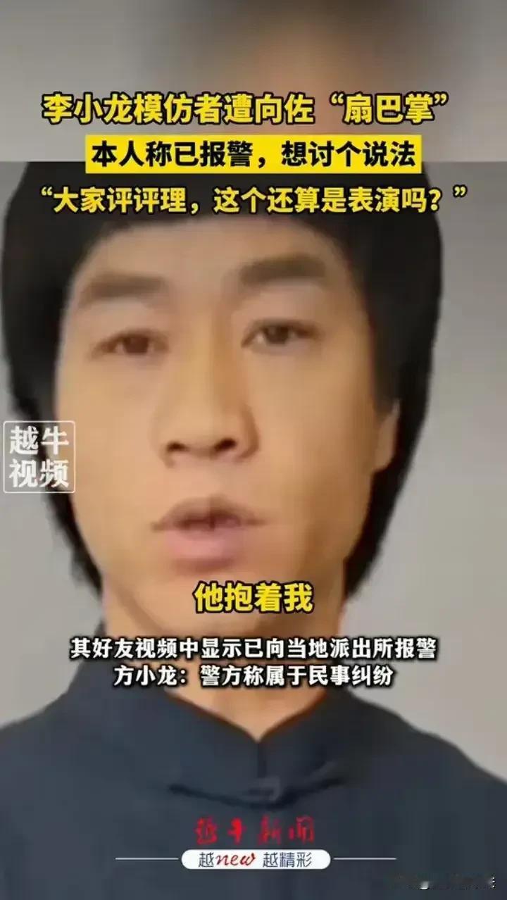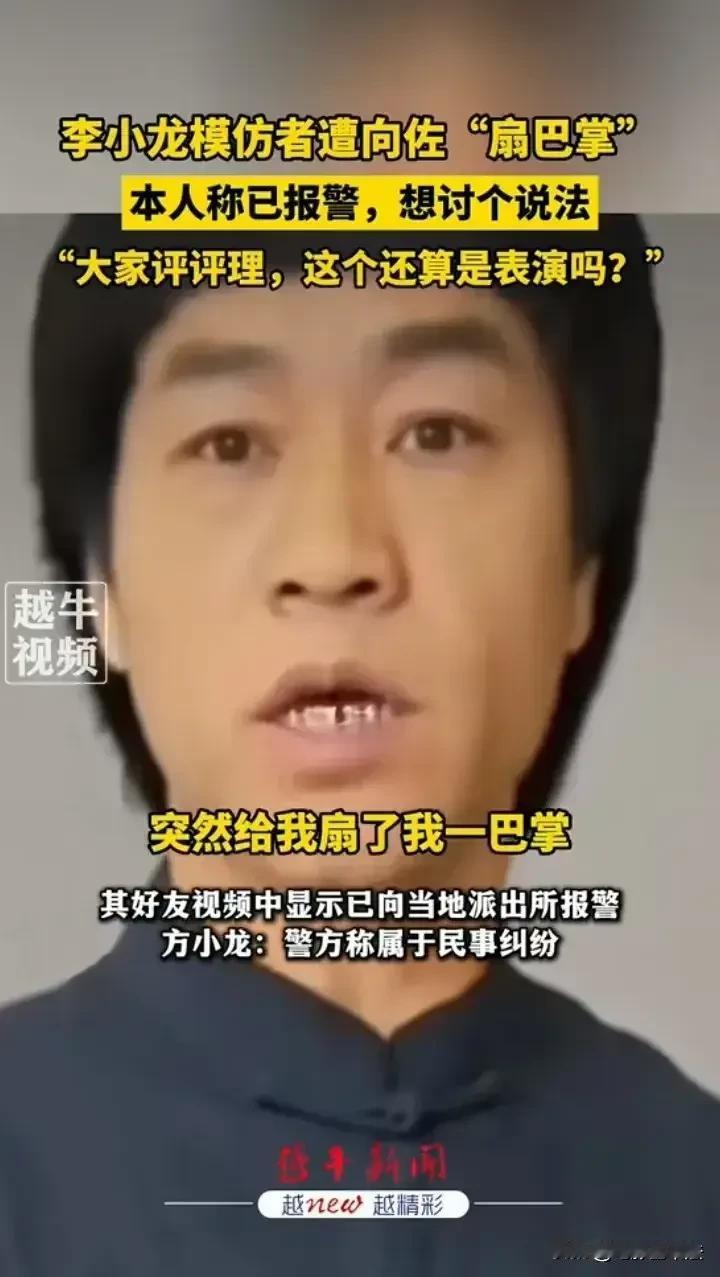 向佐,惹上麻烦了! 10月28日,好不容易走红的向佐冲上热搜,这次不是因为又有谁模仿他的动作,而是有一位李小龙模仿者要起诉他,原因是两人一起表演时向佐扇了他一巴掌,他认为这是侮辱性动作,于是果断报警,只为讨个说法:“大家评评理,这个还算是表演吗?” 网友们的评论很多很搞笑: 他没有恶意,因为他连自己也扇。 对,自己都扇,扇一下别人也相当合理。 只是测试李小龙的反应速度,你说他扇你巴掌? 这玩意儿怎么执法,演戏还把人打几十巴掌呢[奸笑] 开玩笑也要敲诈别人,这是个坏人。 这是有多恨李小龙? 别跟他计较,他犯起病来,自己都扇。 这下终于蹭到流量了。 正常,这是他独有的打招呼方式,和握手是一个意思。 讨说法???想要多少个达不溜? 的确,扇巴掌是他自己的梗,他怎么扇别人呢?经过人家同意了吗? …… 目前这位李小龙已经向当地派出所报警,警方的回复是这属于民事纠纷,而向佐的回应是这是善意的配合活动方模仿自己的梗,还说走的时候和对方有说有笑的,想不到过了几天还把这翻出来炒作他也无话可说。 大家说说看,向佐这是开玩笑过度还是真的欺负人?