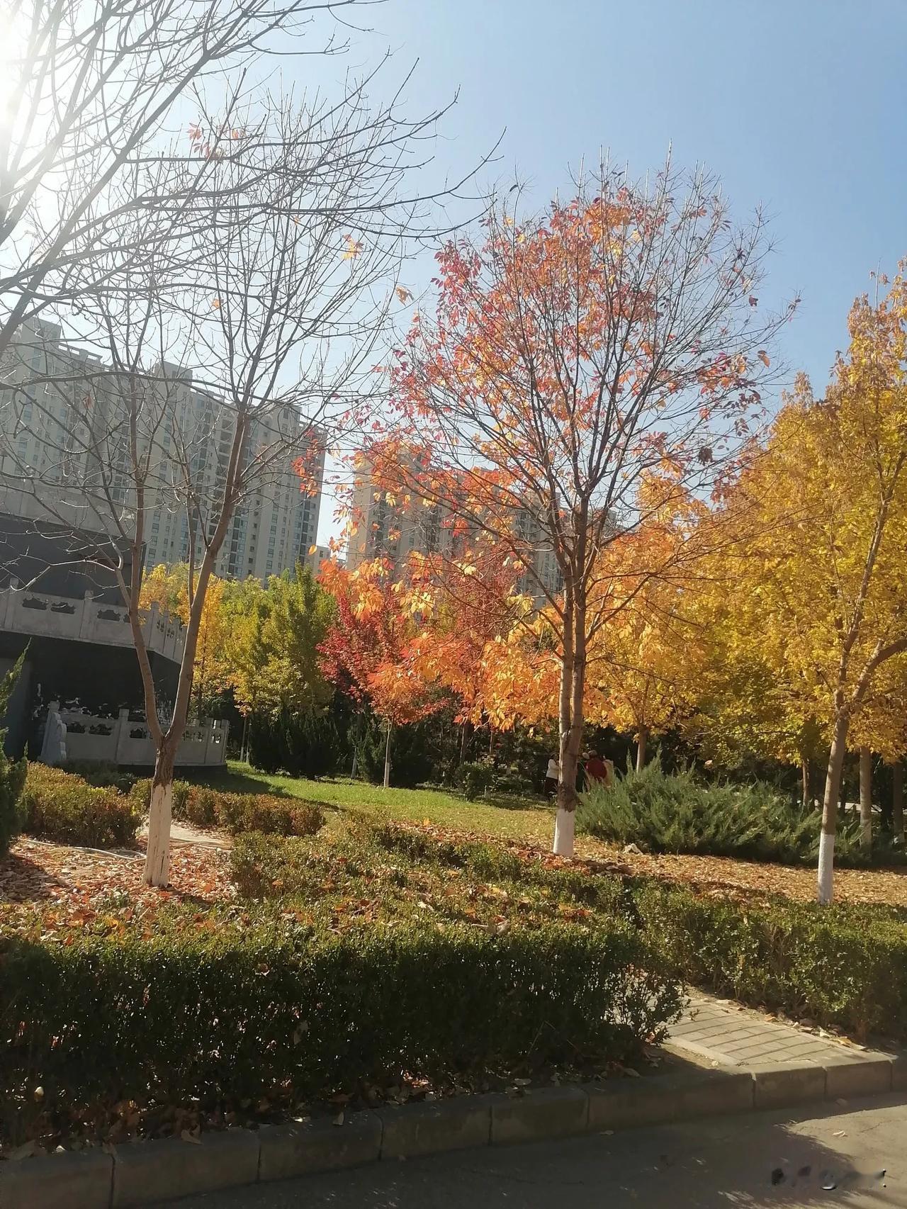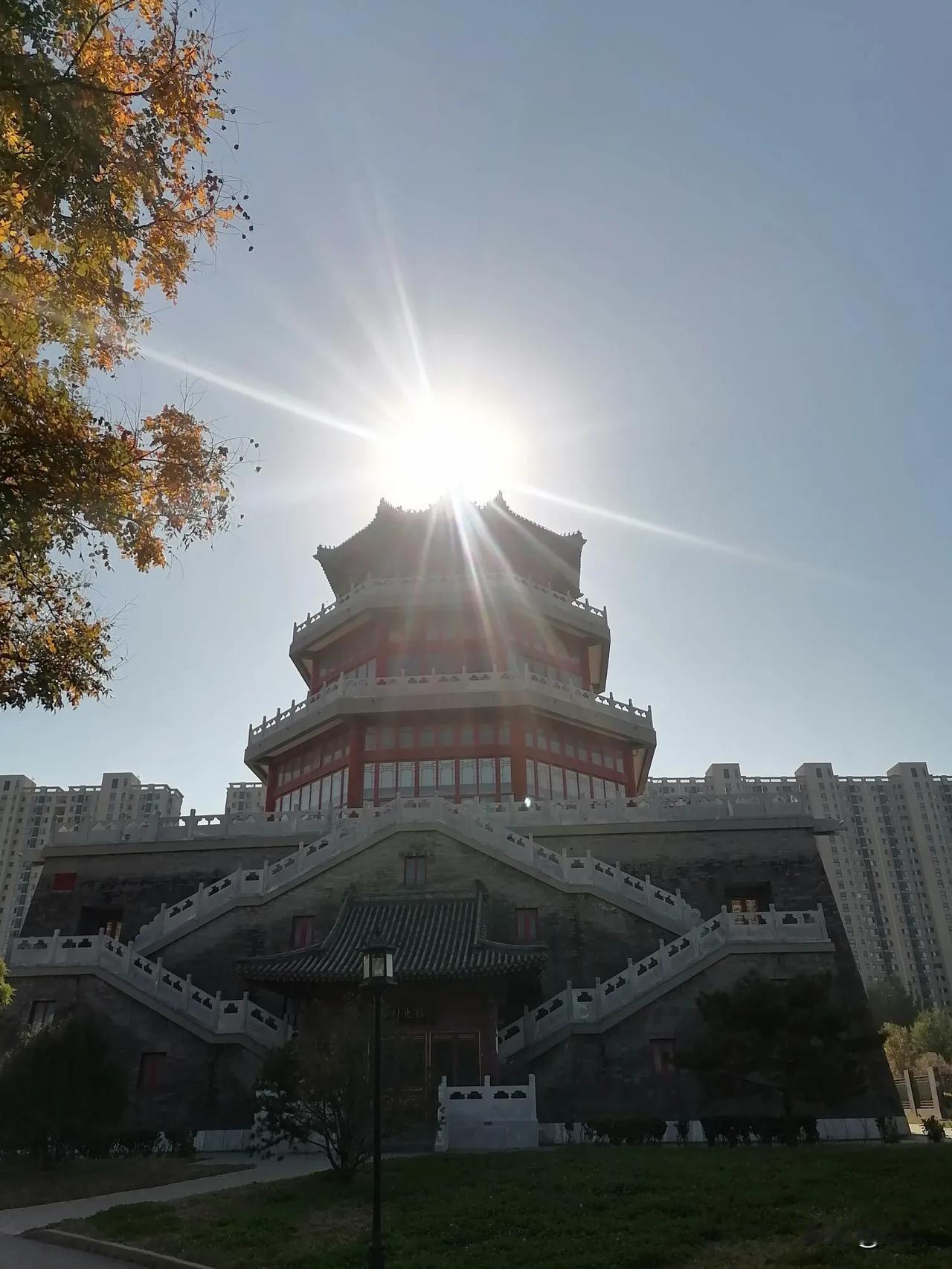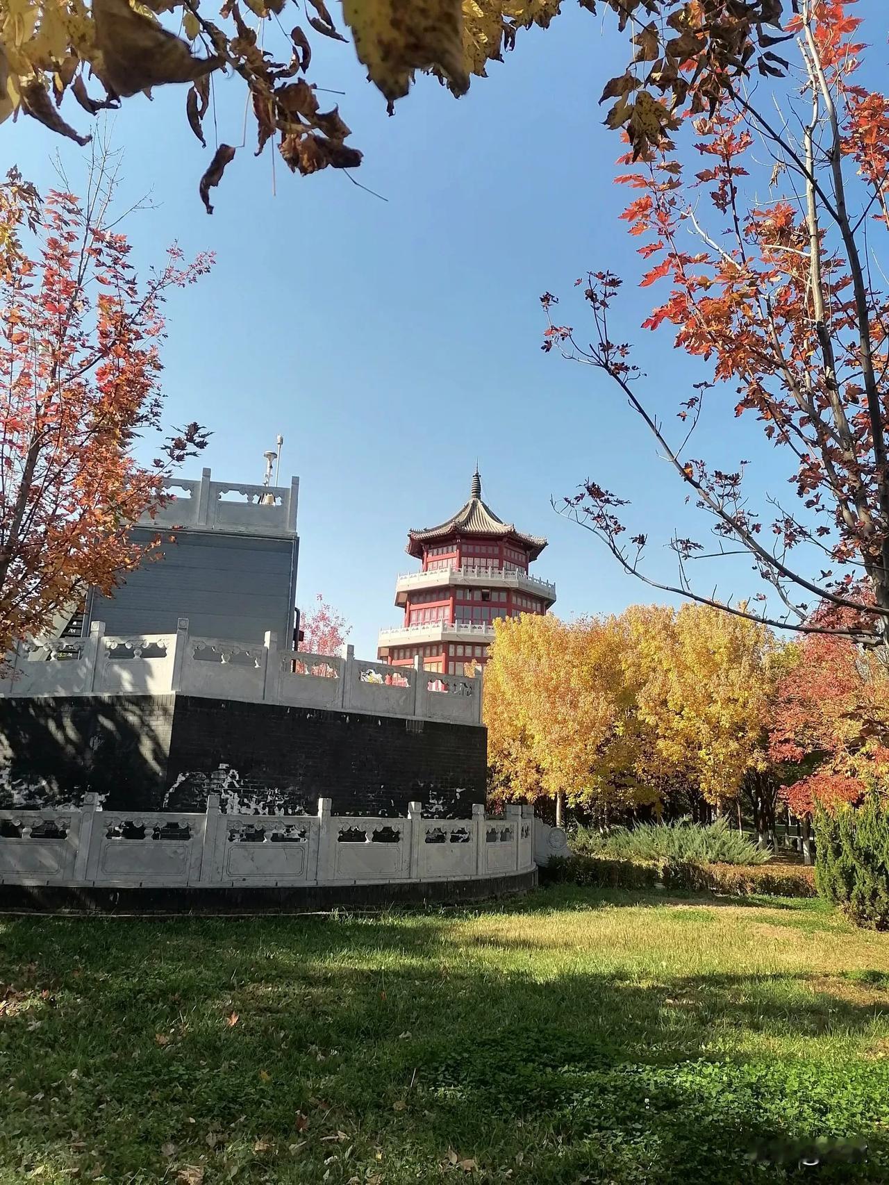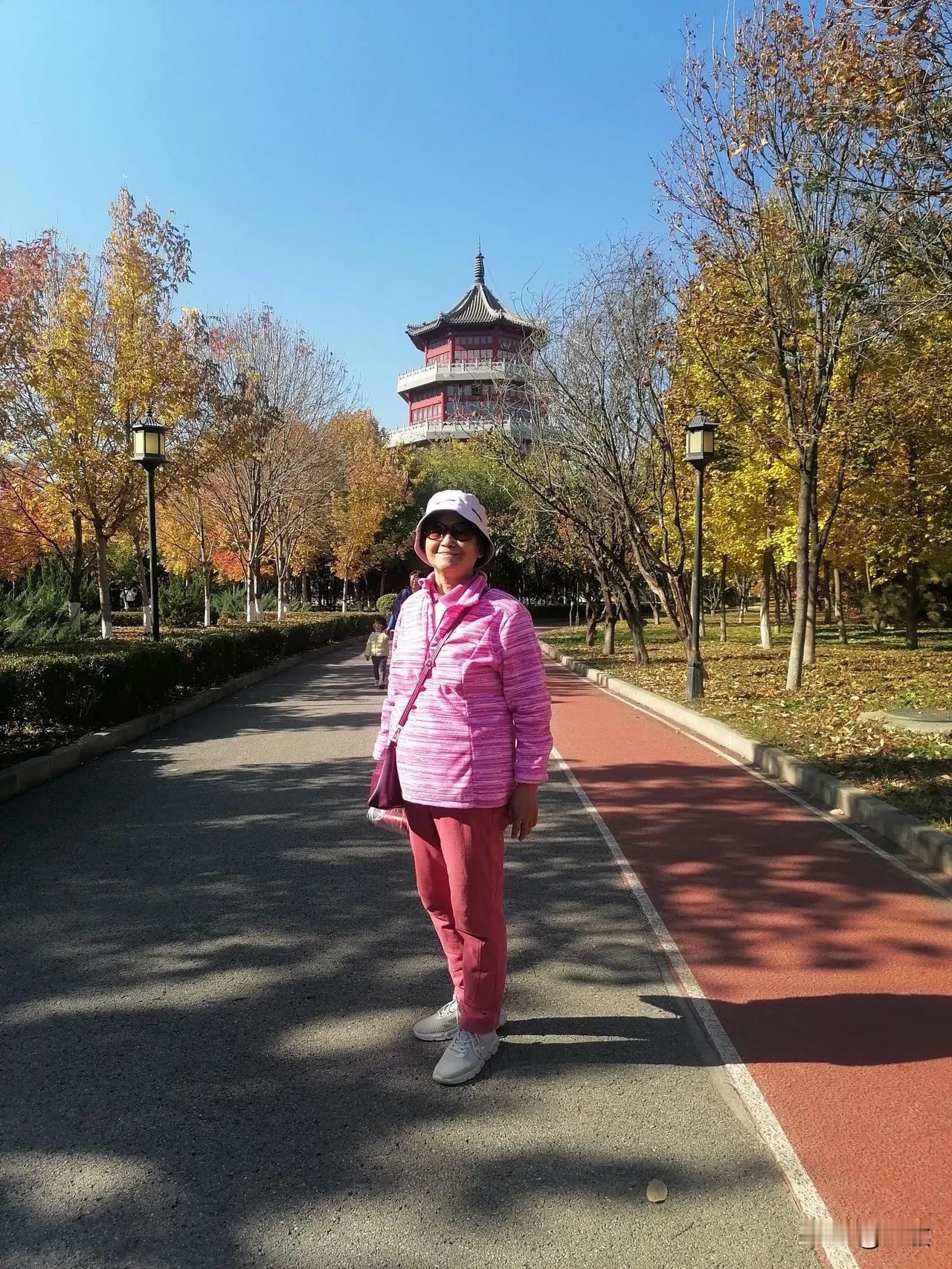 #域见北京#今天是 10月28日,上午我来到北京西局附近的玉璞园一览北京的深秋美。 位于丰台区西局前街与玉璞路交汇处这个小型公园里有个玉璞塔,是仿颐和园内佛香阁三层阁楼而设计。园内枫林银杏树落叶已是厚厚的一层,翠绿的松柏与其呼应,人们纷纷打卡拍照…………。 这深秋的北京,到处都是斑斓之中透着欣赏: 金秋西局玉璞园,玉璞塔尖耀光辉。 脚下落叶知秋远,秋韵弦音迎冬梅。