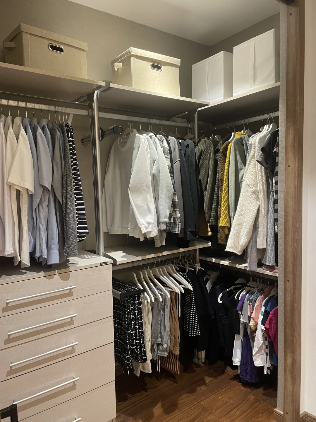 都 2024 年了,别再让木工现场做衣柜了[笑哭R] 不单只不环保,固定样式还不好用 砌墙衣柜打造一个步入式衣帽间 材料都是 F4 星环保标准的,即装即住 最重要还是真的好用,完全打开随心所欲选衣服、找衣服的感觉谁懂呀