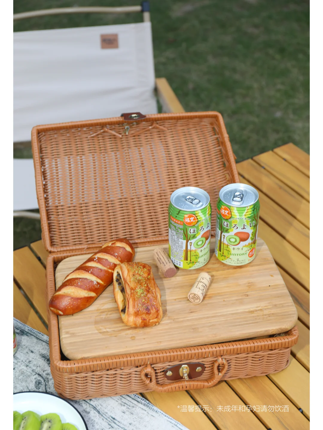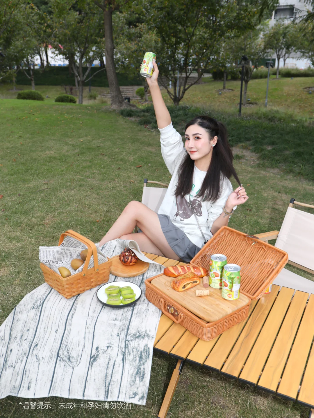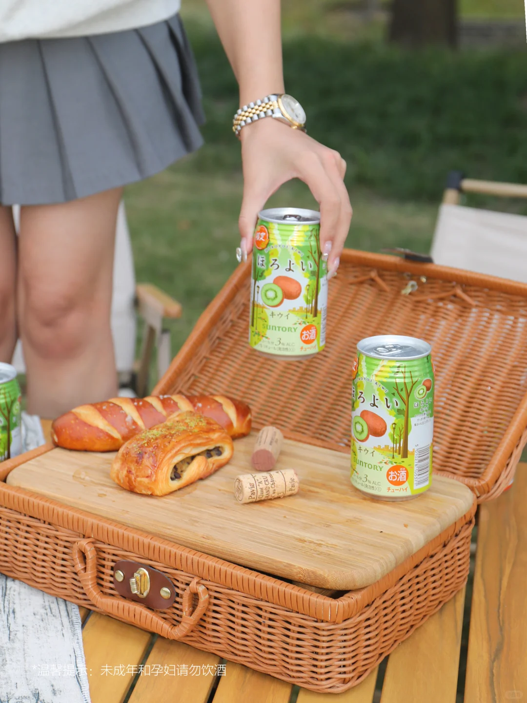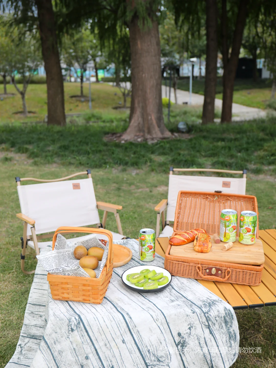 3⃣️zui后!除了准备水果和面包之外,一定要带上果酒哦!猕猴桃绿的包装,拿在手上也拍照也很出片;酸酸甜甜的口感,一口下去,好像感受到了秋天的味道~