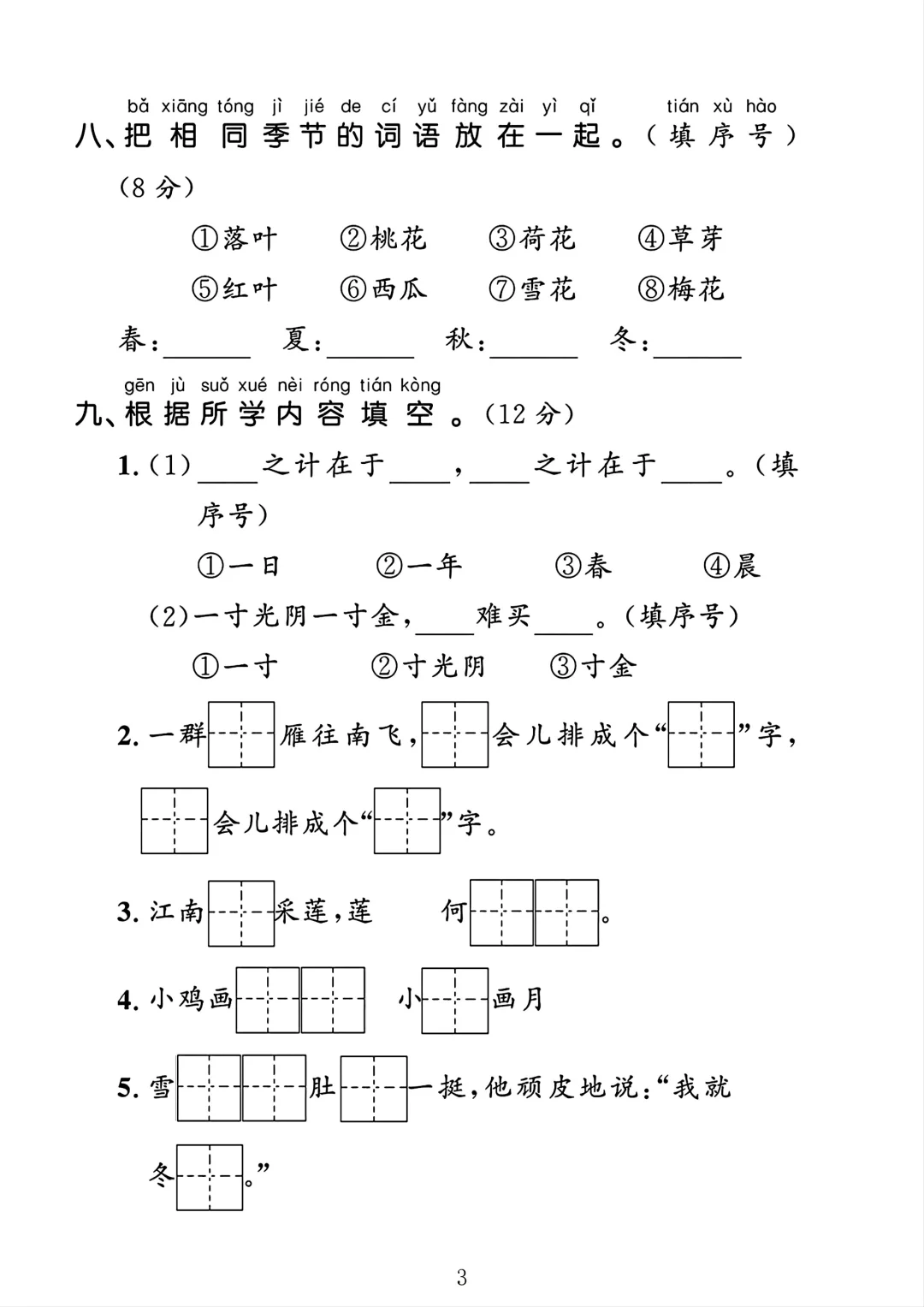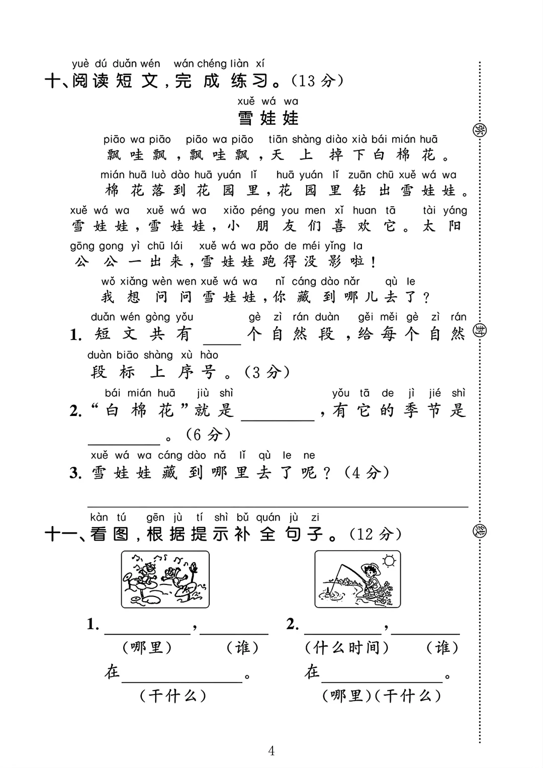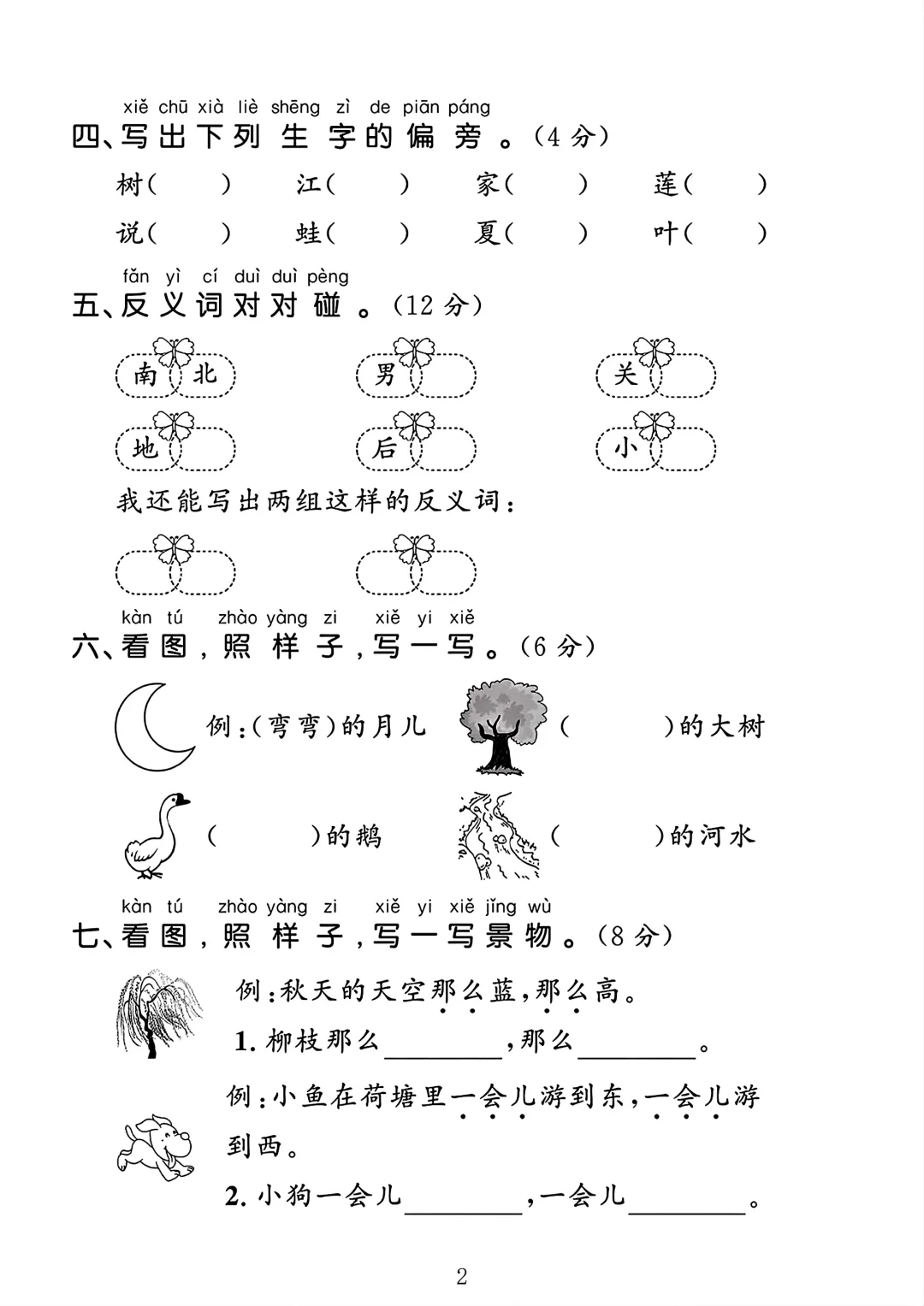 人教版 一年级上册语文 单元测试 第五单元测试卷 电子版可打印 试卷