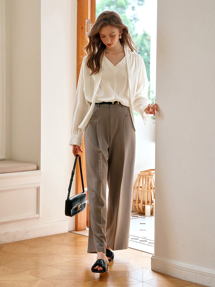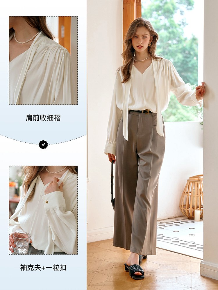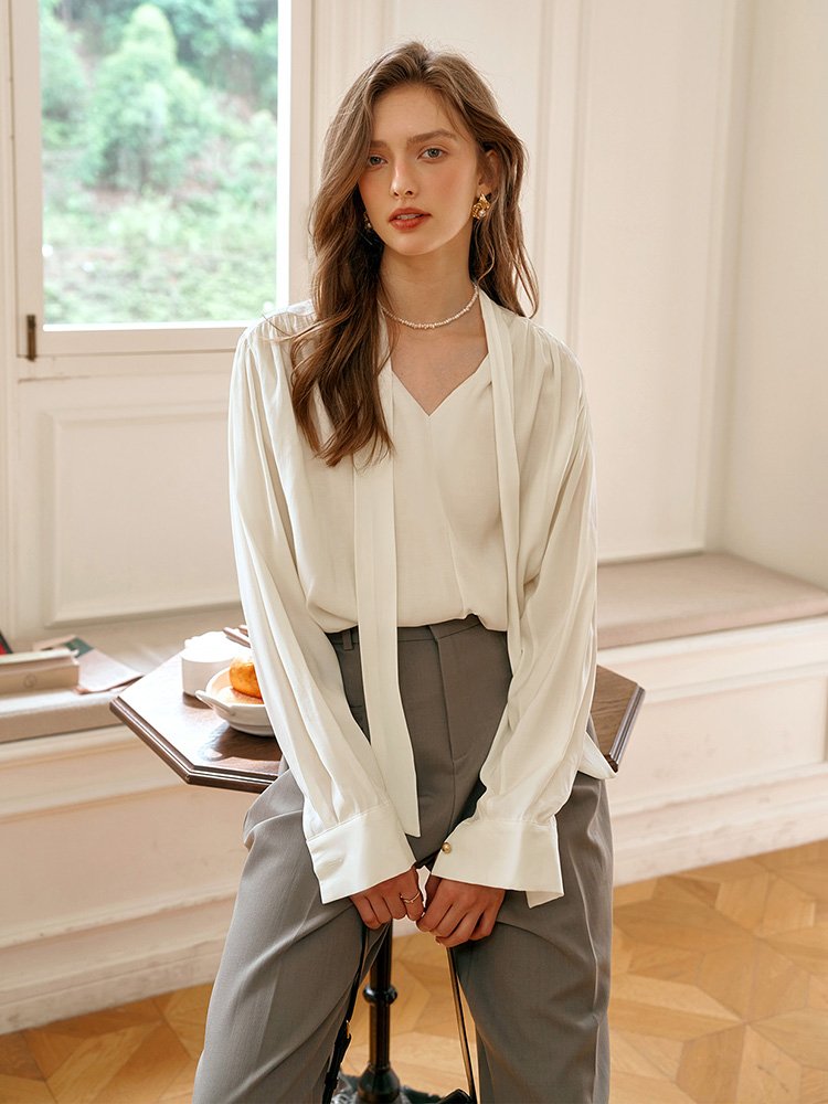 奢雅之美!法式V领系带长袖衬衫