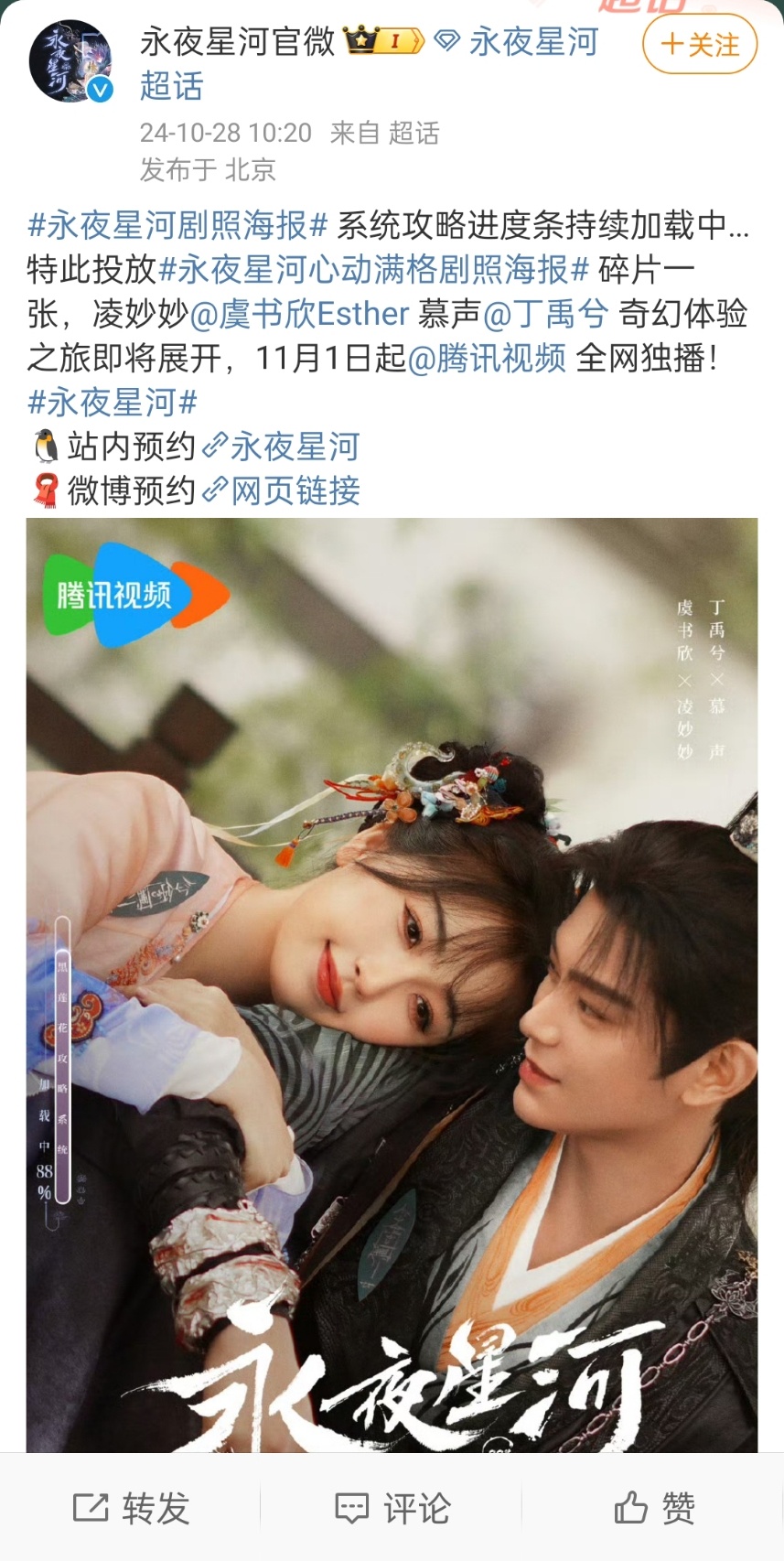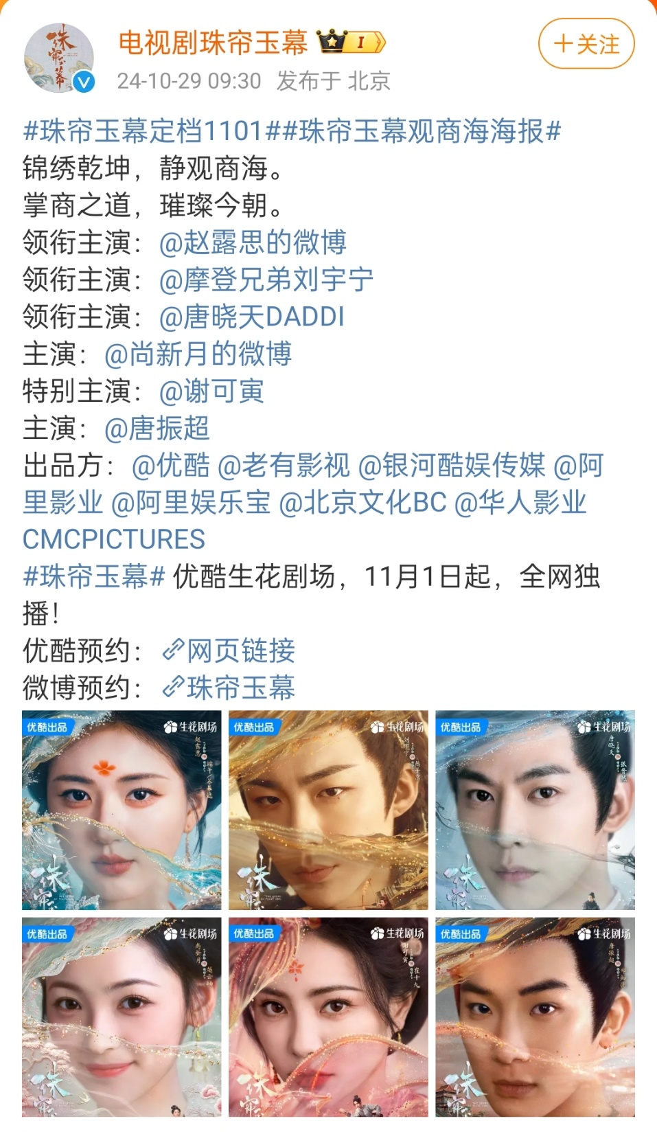 #虞书欣赵露思新剧同时开播# 🐧虞书欣丁禹兮《永夜星河》VS👖赵露思刘宇宁《珠帘玉幕》,两大95花🌸的剧都定档11月1日开播了,正面对打,你看哪部?#永夜星河珠帘玉幕同时开播#