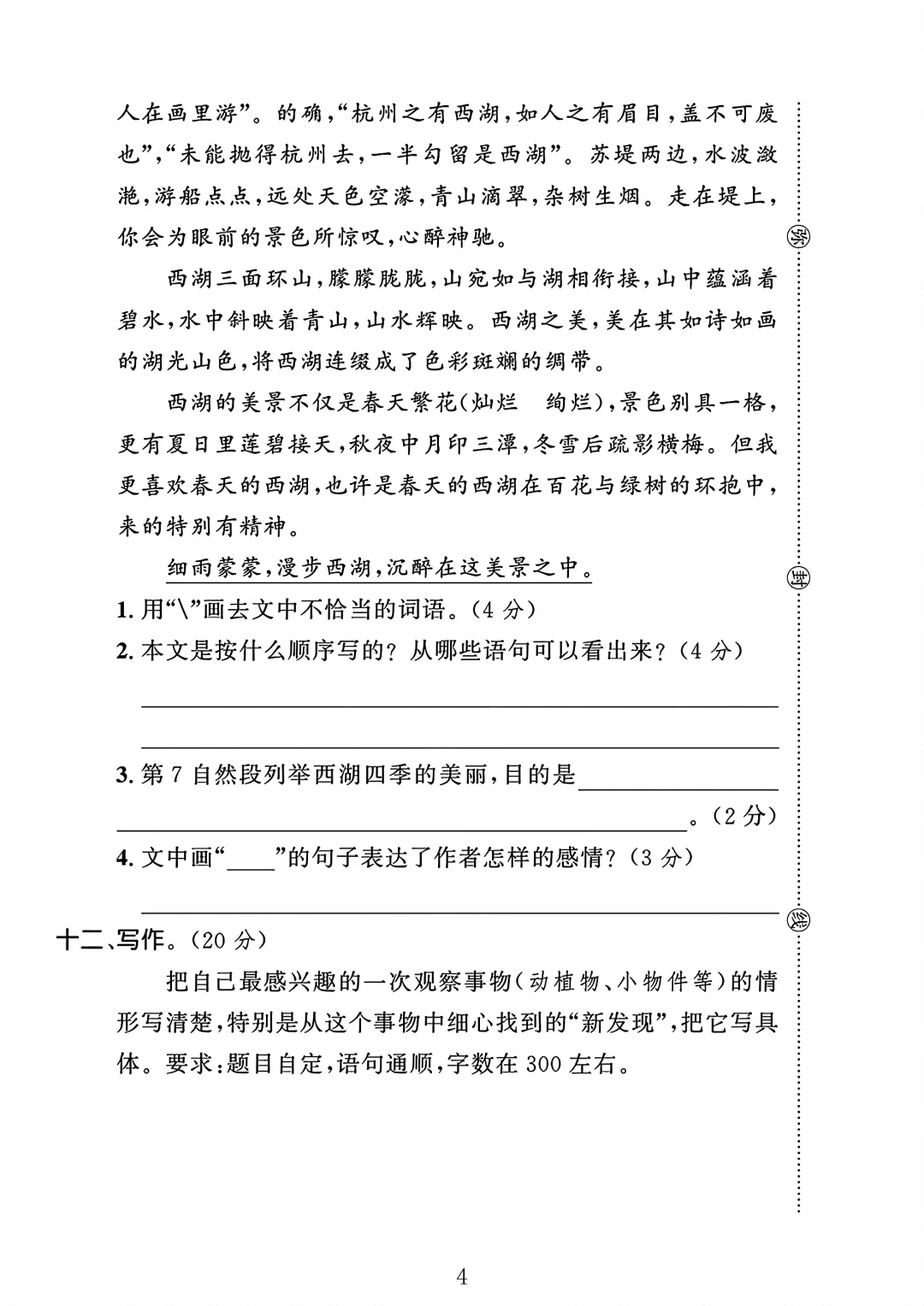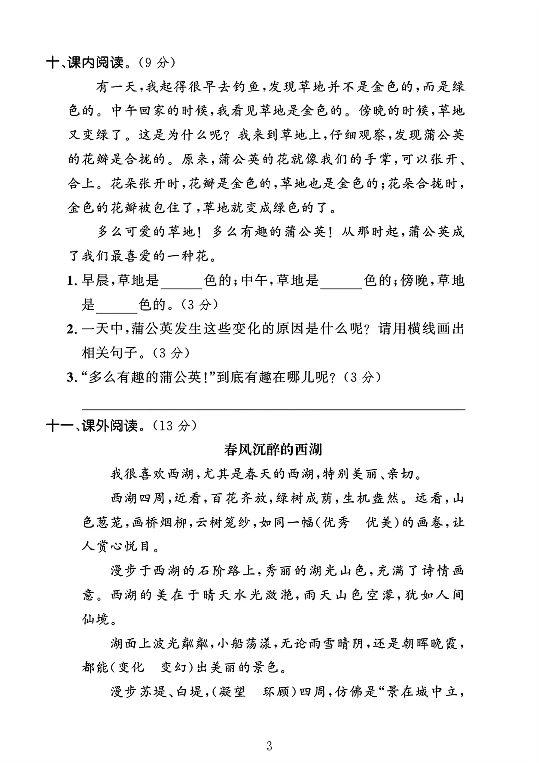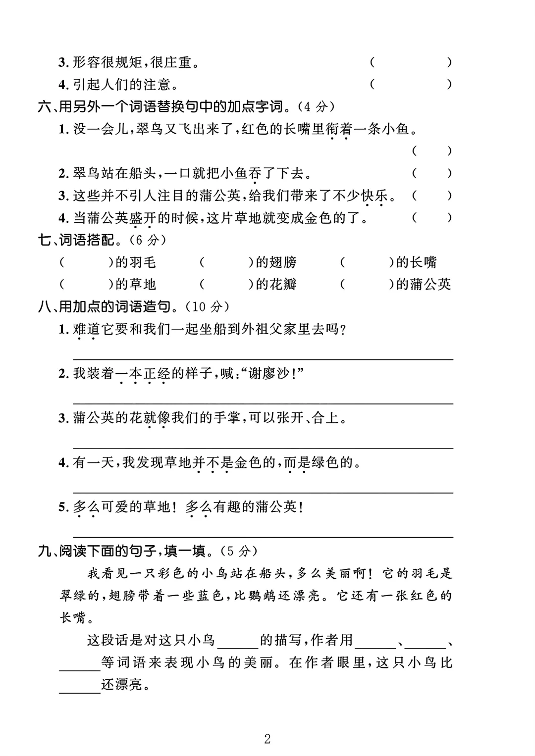 人教版 三年级上册语文 单元测试 第五单元测试卷 电子版可打印 试卷