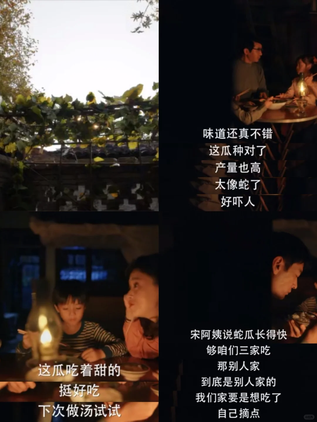 🔹黄玲提议种蛇 瓜,省钱又好吃,谁知蛇瓜长势太迅猛,一个月后大家看见蛇瓜就想吐![笑哭R][笑哭R] 🔸一开始吃觉得味道很好,还换着花样做各种蛇瓜,半个月后宁可喝稀饭都不想吃[捂脸R] 🔹不过宋莹可是吃蛇瓜攒了一笔积蓄,本想给栋哲买电视,最后贴补给了黄玲。