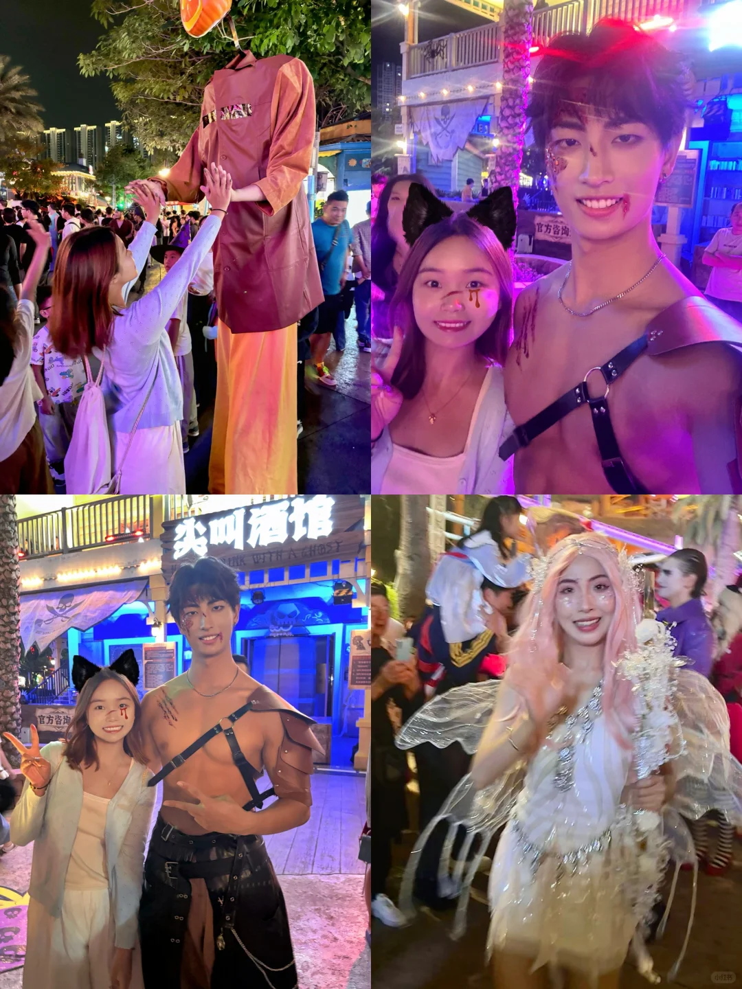现场万圣节氛围感拉满!! 摩天轮下🎡 惊现放大了的emoji表情🎃超可爱!! 路上随机抓npc拍照 都好配合😍 还有猫猫肌肉男🤤嘴角根本压不住哈哈哈 去做个幸福女生🤭