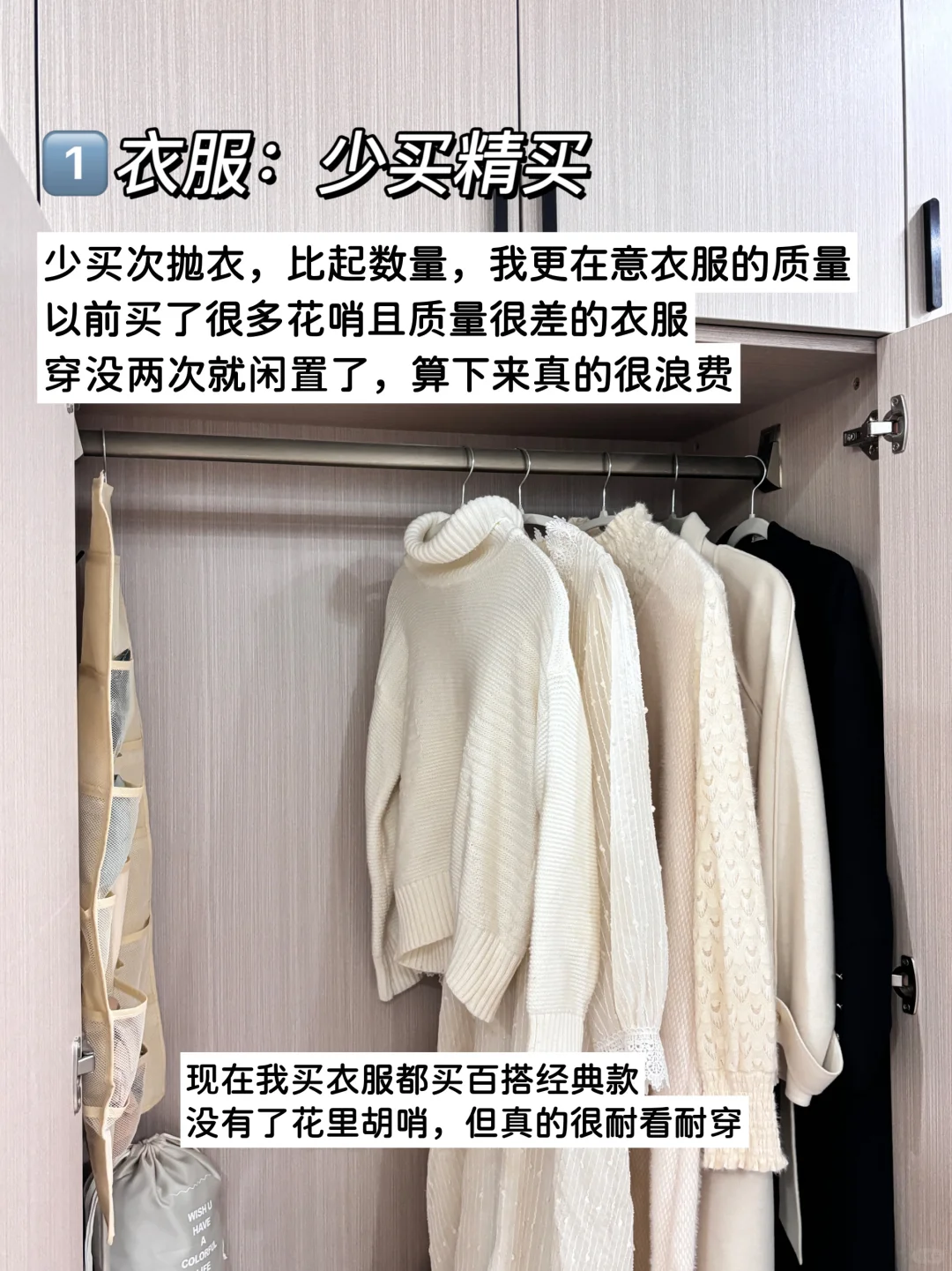 从月光到存款六位数 从盲目买买买到现在的理性消费 我越来越爱上了这种可控且在持续变好的生活 - 分享一下极简给我带来的六个变化: 1️⃣衣服:少买精买 少买次抛衣,比起数量,我更在意衣服的质量 以前就是买了很多网红款但质量很差的衣服 穿没两次就闲置了,算下来单次穿搭价格一点也不低 - 2️⃣一日三餐:少吃外卖多做饭 上班之后一日三餐基本都是点外卖、吃快餐 吃了一段时间感觉整个人都变得很油腻 所以现在不管多忙,都坚持自己带饭 - 3️⃣护肤:出一进一 护肤品只买适合自己的,不跟风乱买 进一出一不囤货,以前总为了凑满减囤好几瓶 后来发现这并不会帮我省钱,还会加快我消耗的速度 - 4️⃣存钱:出门自带省小钱 以前很懒出门能不带就不带 但是每次要用纸巾或手机没电就得求助别人 特别是租借充电宝,还得到处找地方归还 - 5️⃣运动:健康身体是基础 我发现人在三十岁前总是用健康换钱 后三十年就开始花钱买健康 所以我想说,无论如何身体都是革命的本钱 - 6️⃣成长:舍得花钱提升自己 我不会花钱去买很多包包、电子产品 但是我会很舍得花钱提升自己的搞钱技能 花钱去体验去学自己感兴趣的东西 -