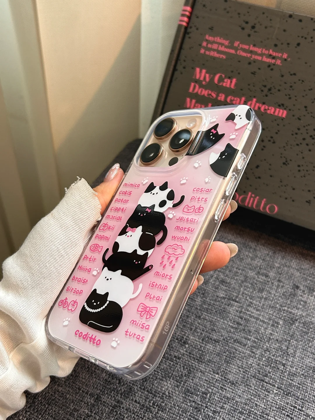 和沙漠金很配的粉色可爱猫咪手机壳耶!!!