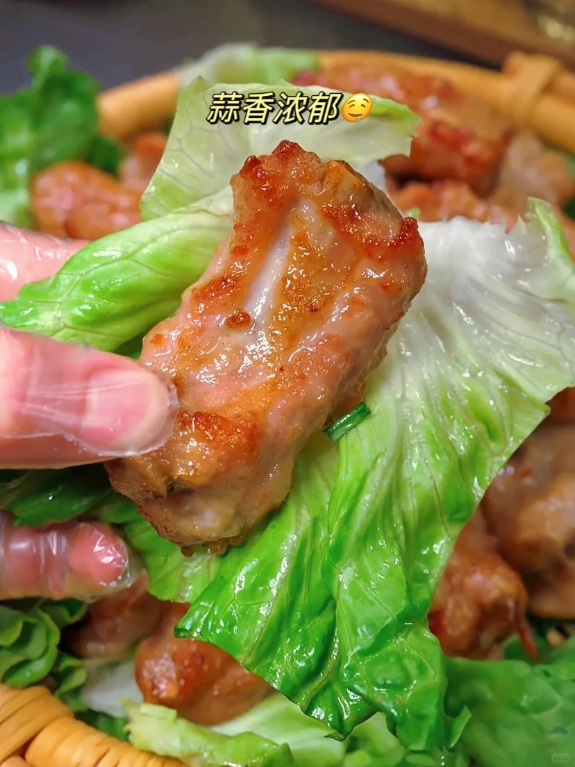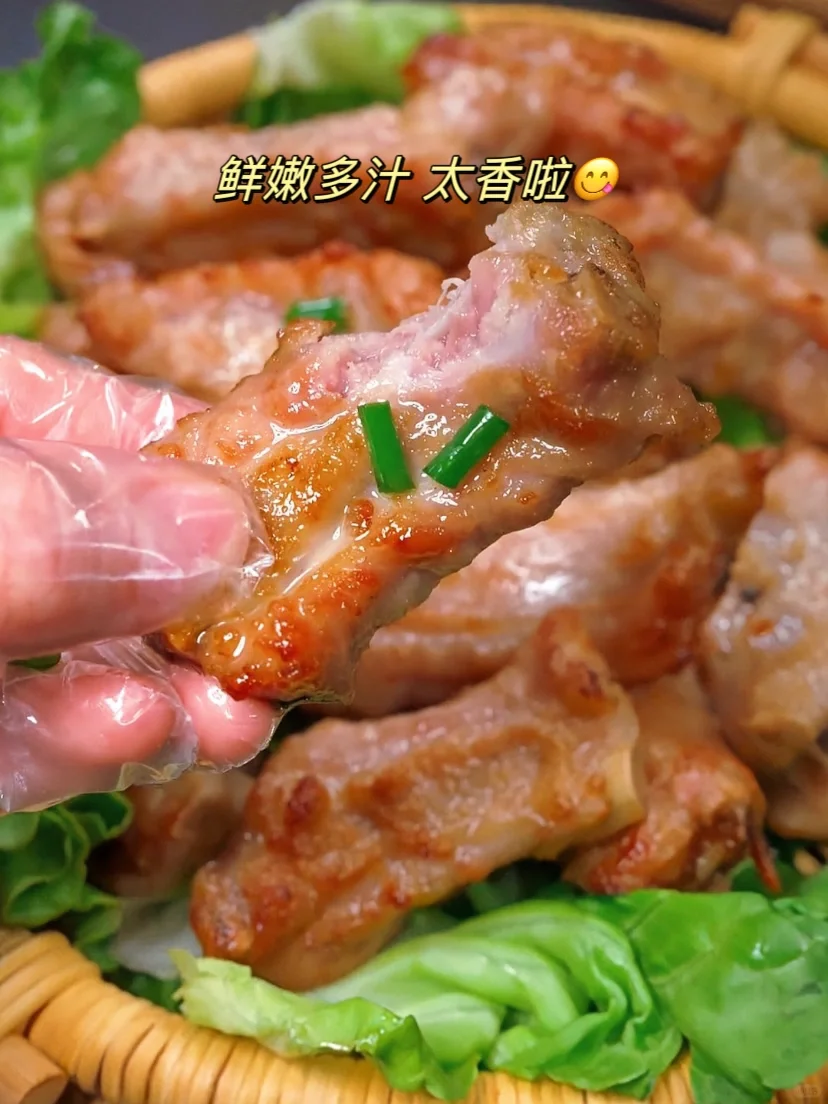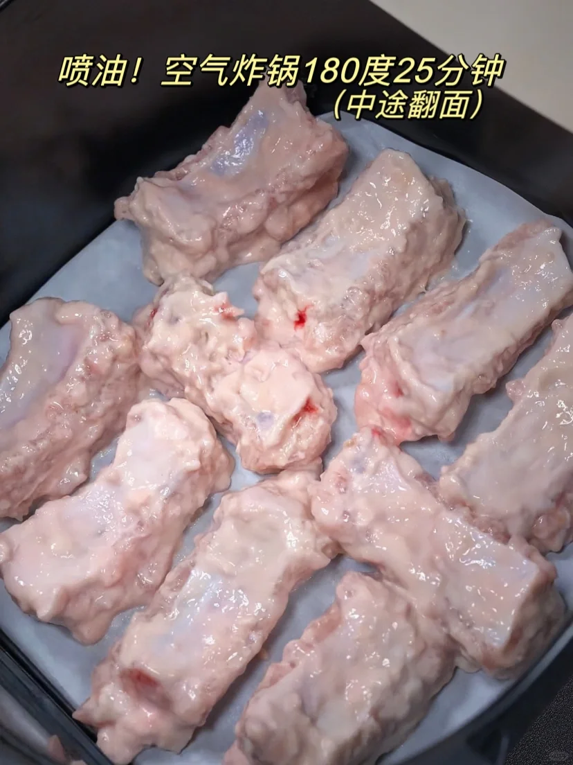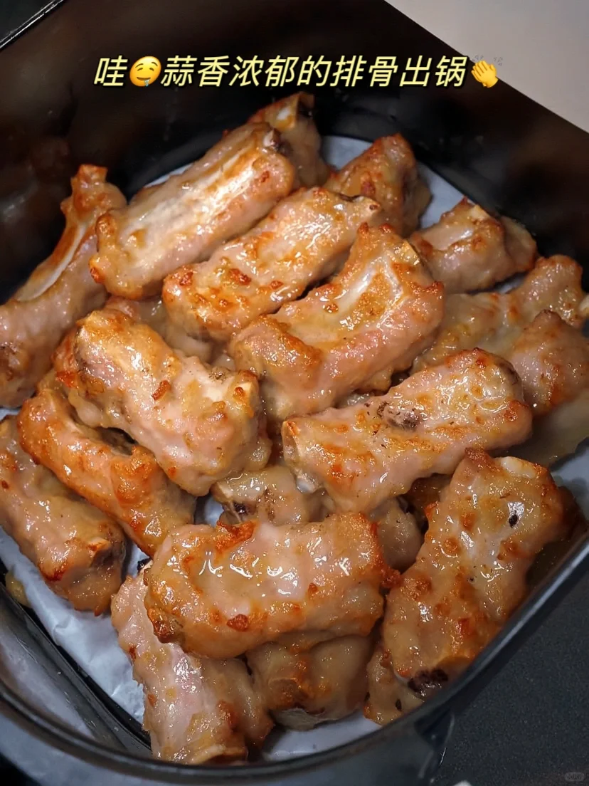 如果你有空气炸锅 这蒜香排骨真的要试试!懒人也能做的快手菜,外焦里嫩还带汁水,好吃到嗦手指! 所以家中常备这个半成品,餐桌上必不可少,全家都爱吃😋