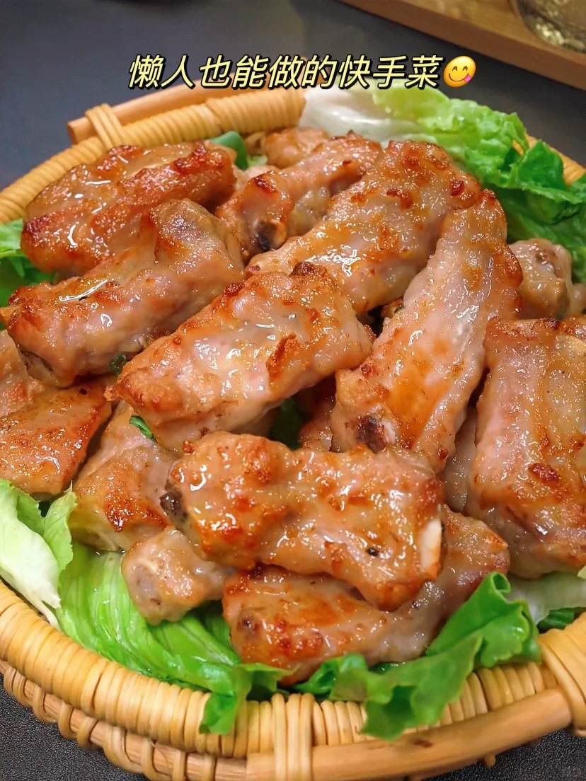 懒人也能做的快手菜!空气炸锅蒜香排骨👏