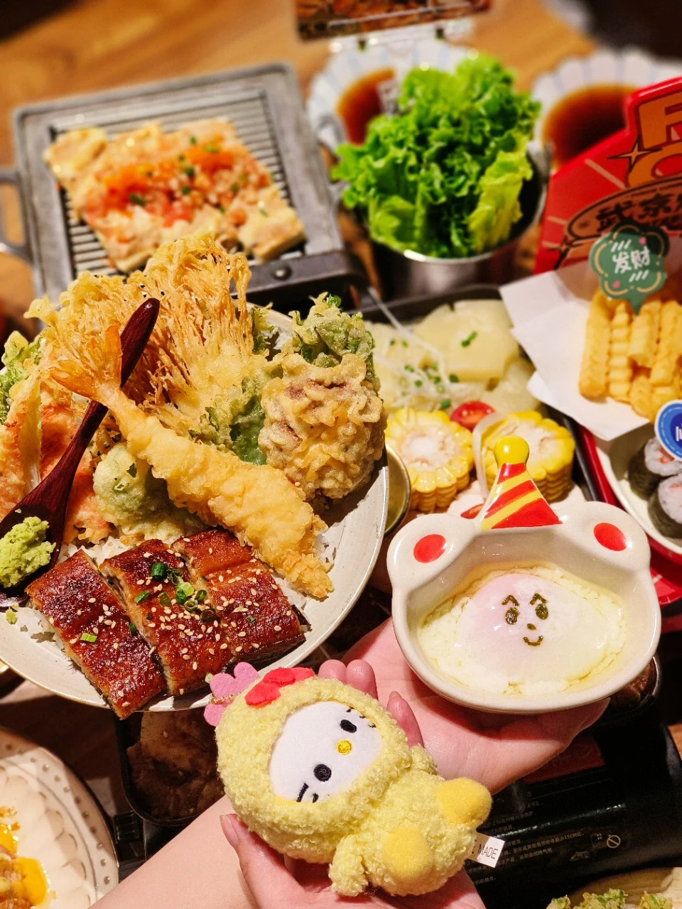 要我说,汕头融合料理当数武京烧👍🏻 这碗🥙天妇罗海鲜鳗鱼饭料敲足! 大虾天妇罗、炸蟹柳好酥脆! 温泉蛋也敲可爱!还🈶黄色天妇罗娃娃