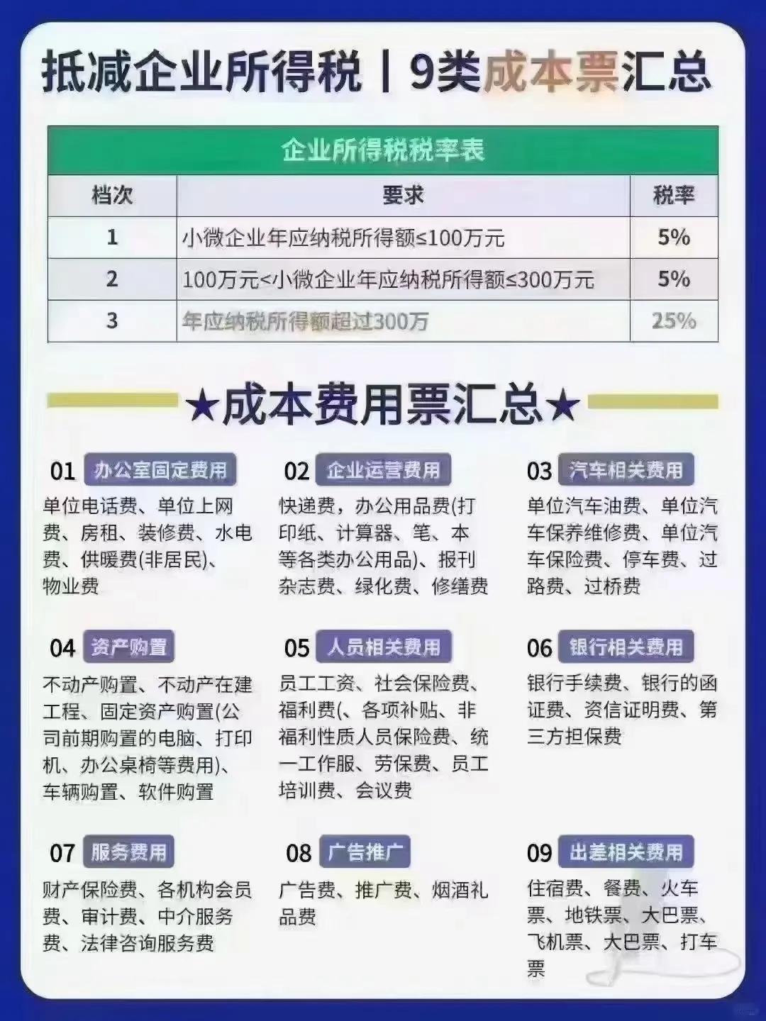 小规模企业纳税人(小型微利企业)增值税、企业所得税税收优惠政策及成本费用票汇总: 小型微利企业是既包括小规模纳人,也可能包括一般纳税人。 符合小微企业的条件: 1.年度应纳税所得额不超过300万元; 2.从业人数不超过300人; 3.资产总额不超过5000万元。 各位老板注意咯:不要冤枉多交税,合理节税。#简单易懂财税# #财税好帮手# #可抵税🔥# #财税实操答疑#