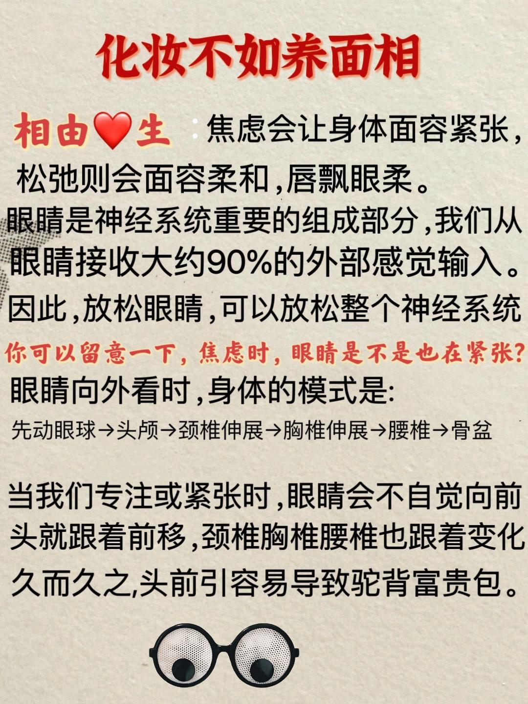 养成松弛感美女。眼球后移,神意内守,养成松弛感美女