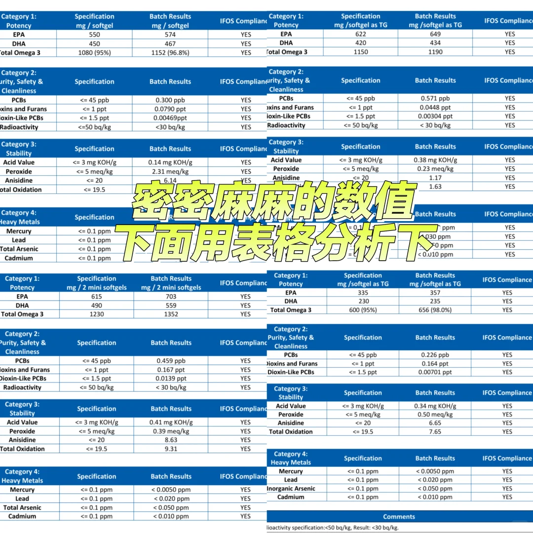 [星R]各大品牌鱼油都在宣传自己的IFOS认证五星,其实不同品牌,不同批次的报告数值差异不小,以我买的三个品牌,4个批次的鱼油为例吧[偷笑R]