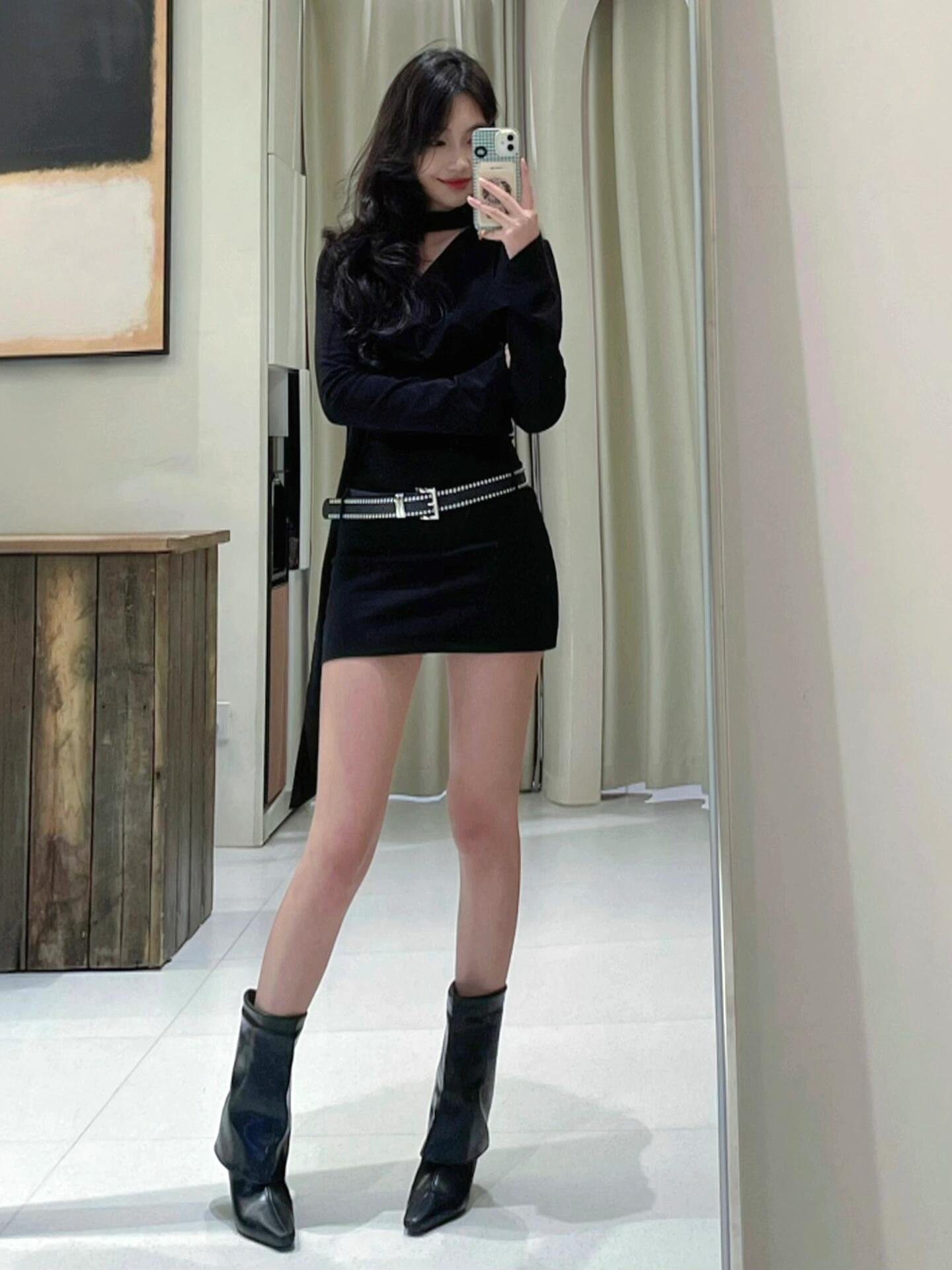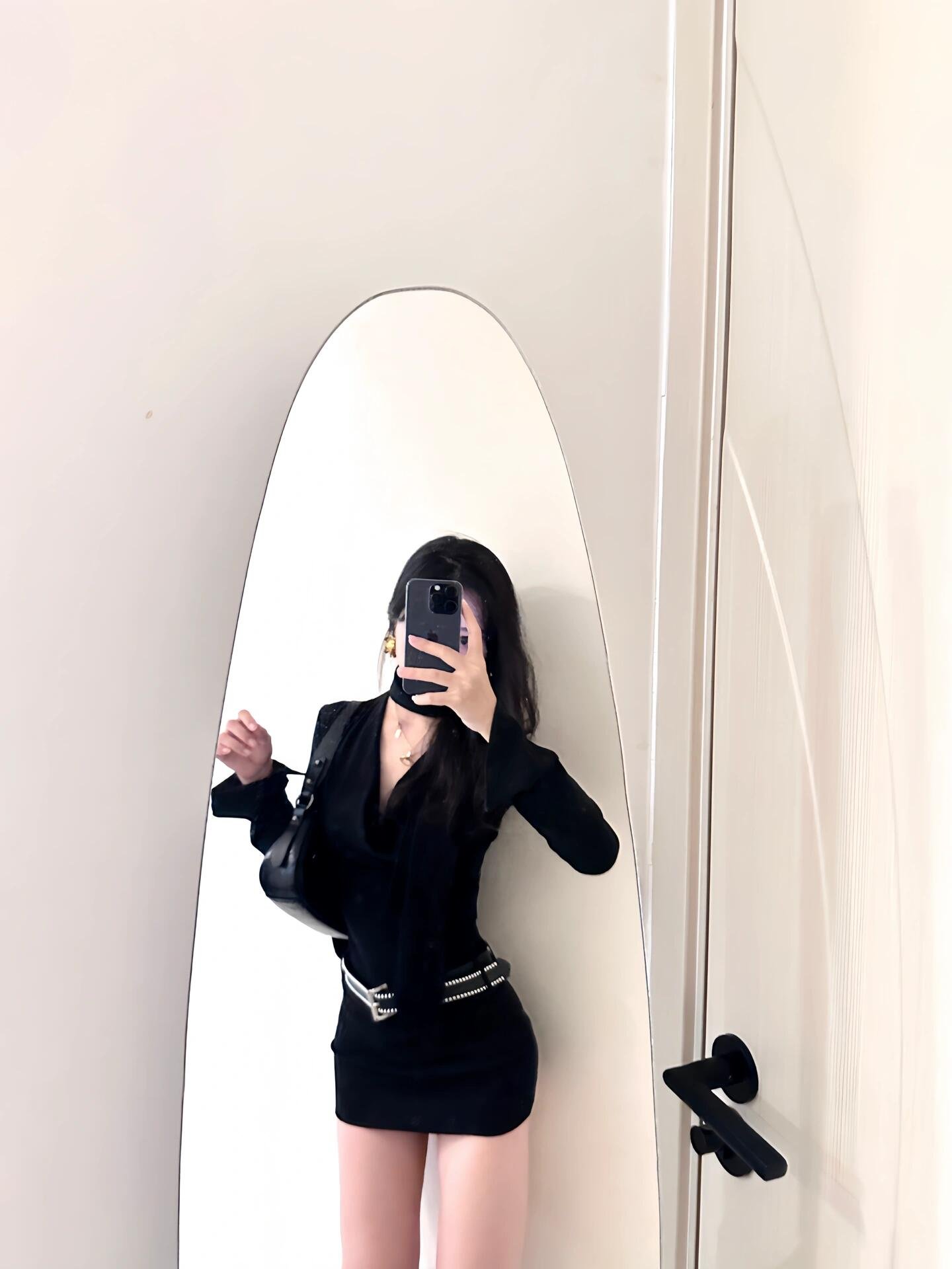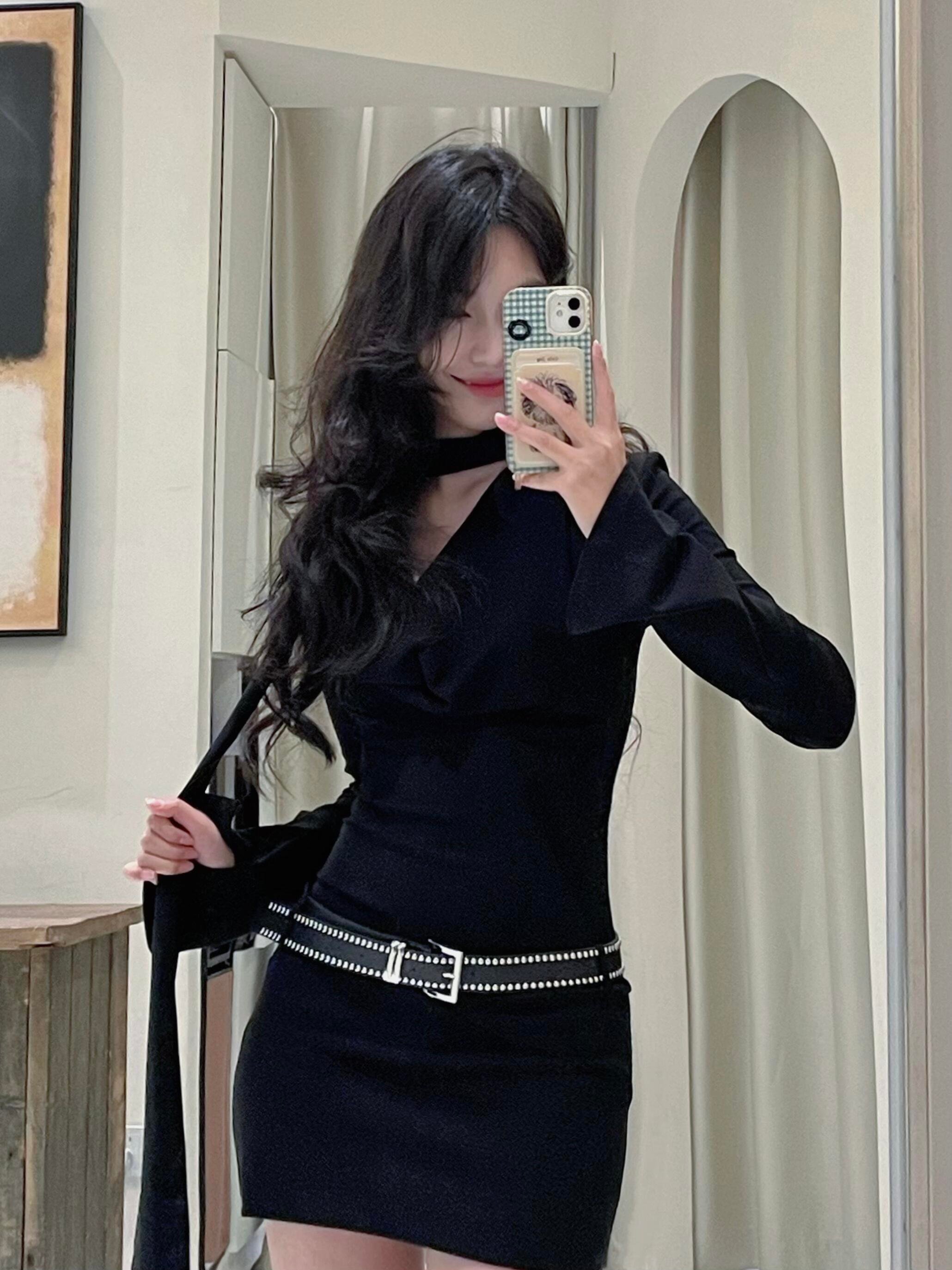 2024秋冬新款季黑色v领内搭包臀连衣裙小个子女法式气质打底短裙