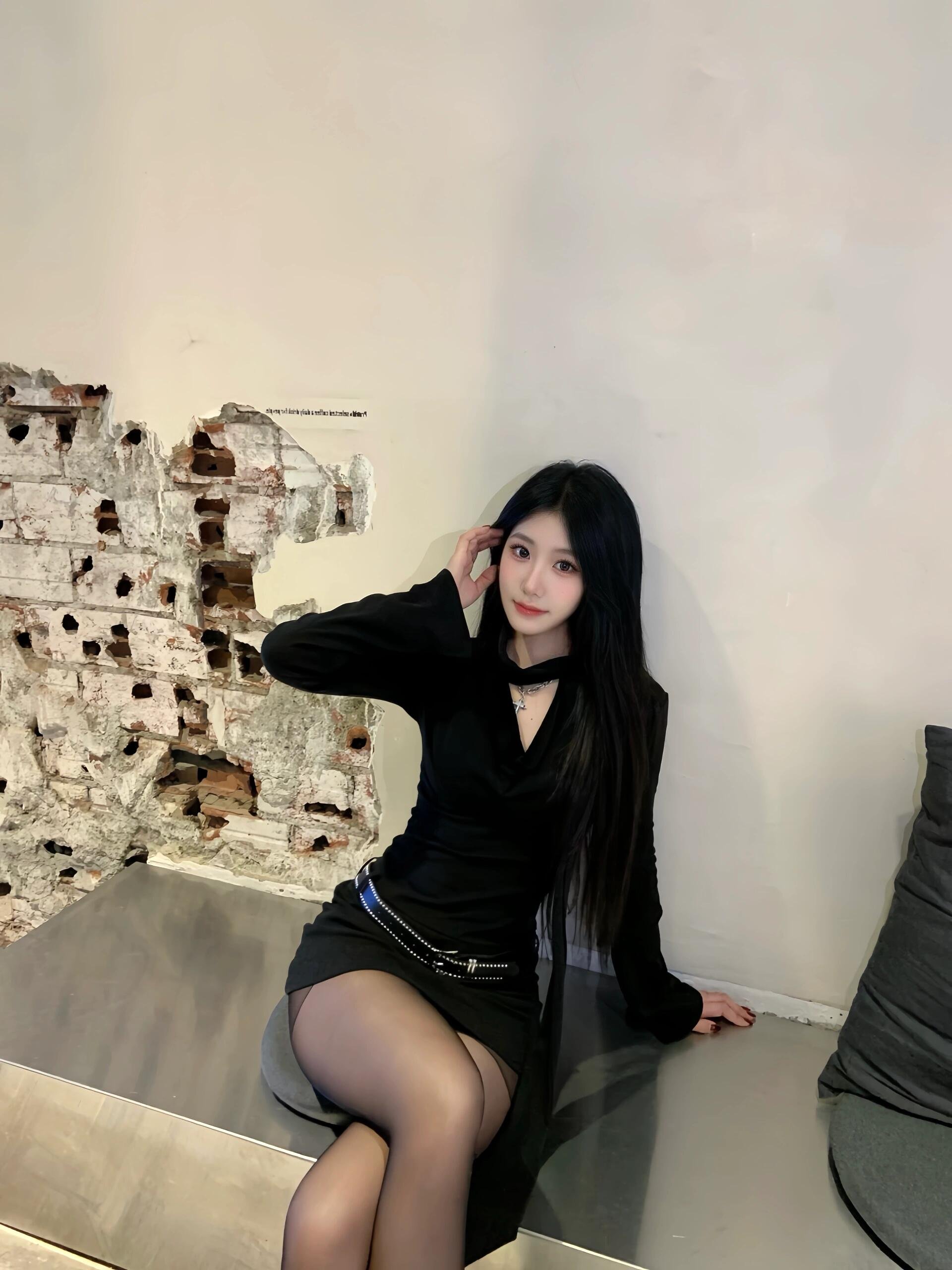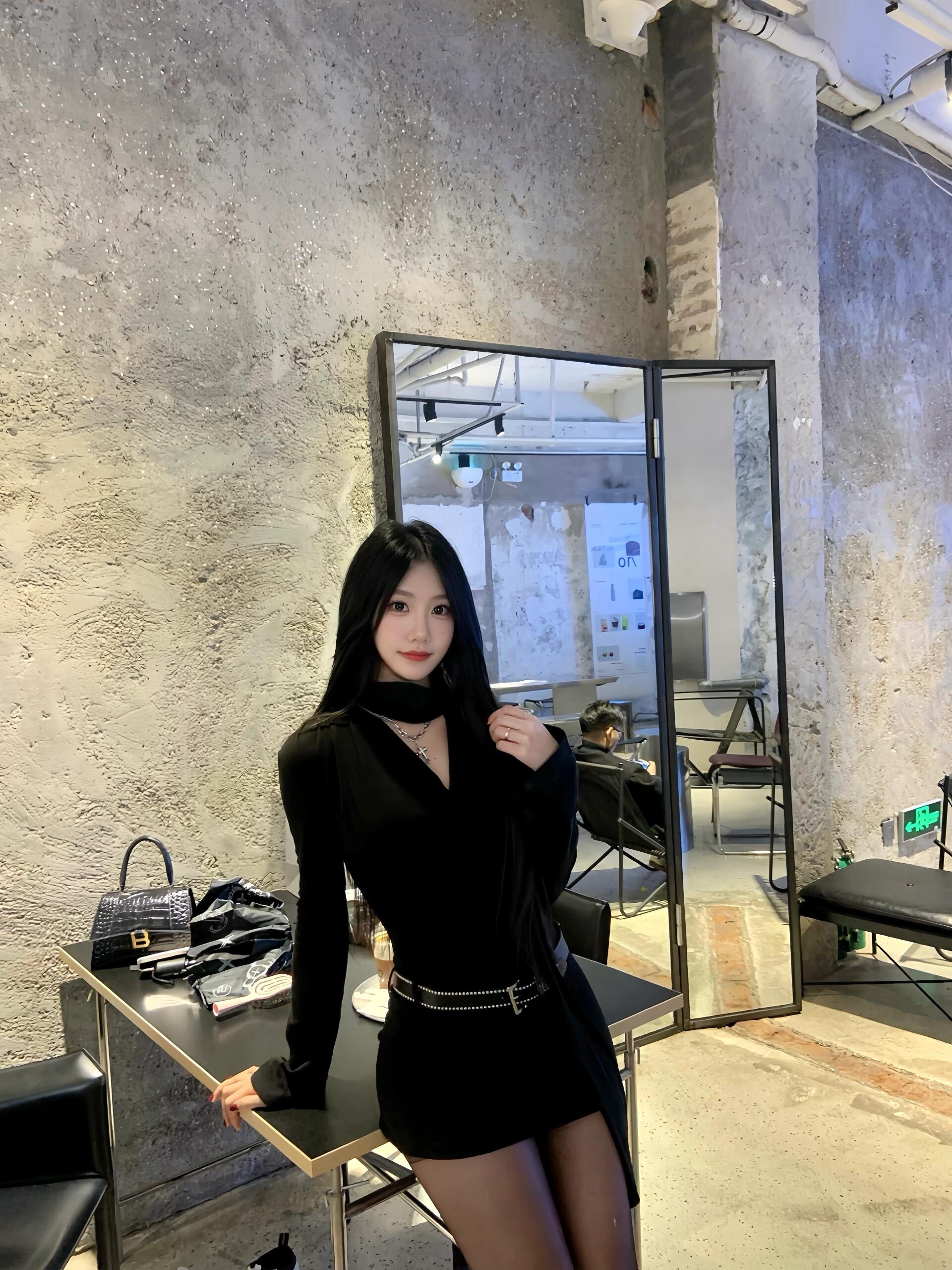 黑色v领内搭包臀连衣裙小个子打底短裙