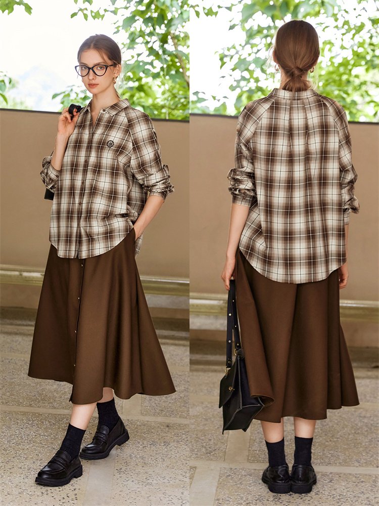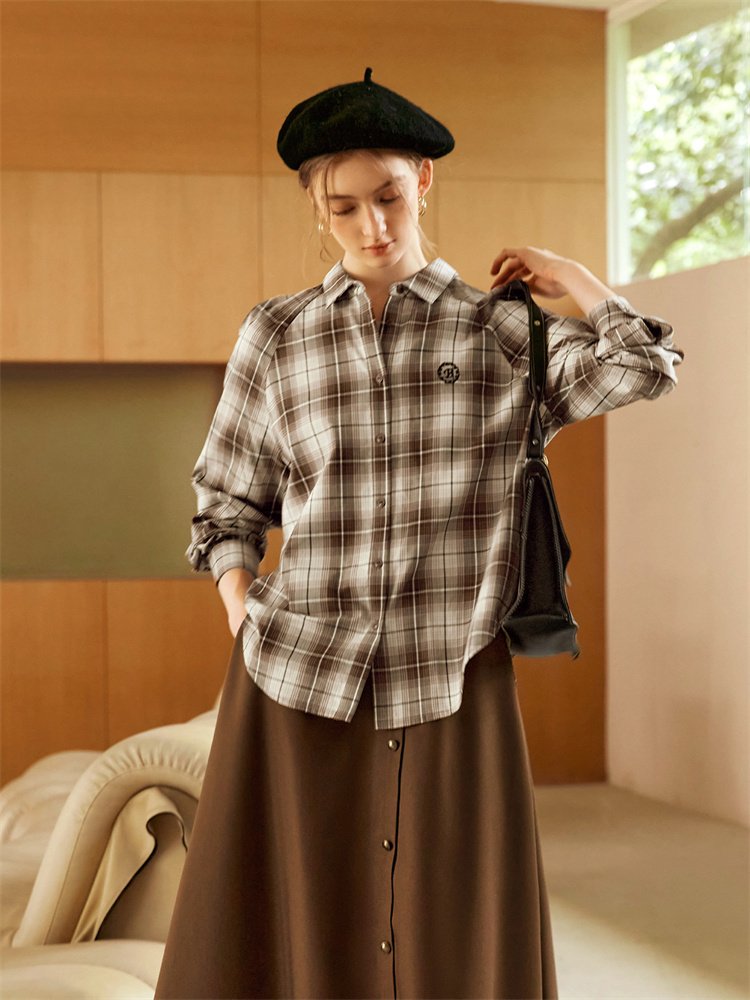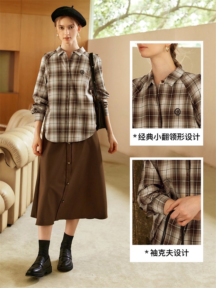 随性复古!法式通勤刺绣格子衬衫