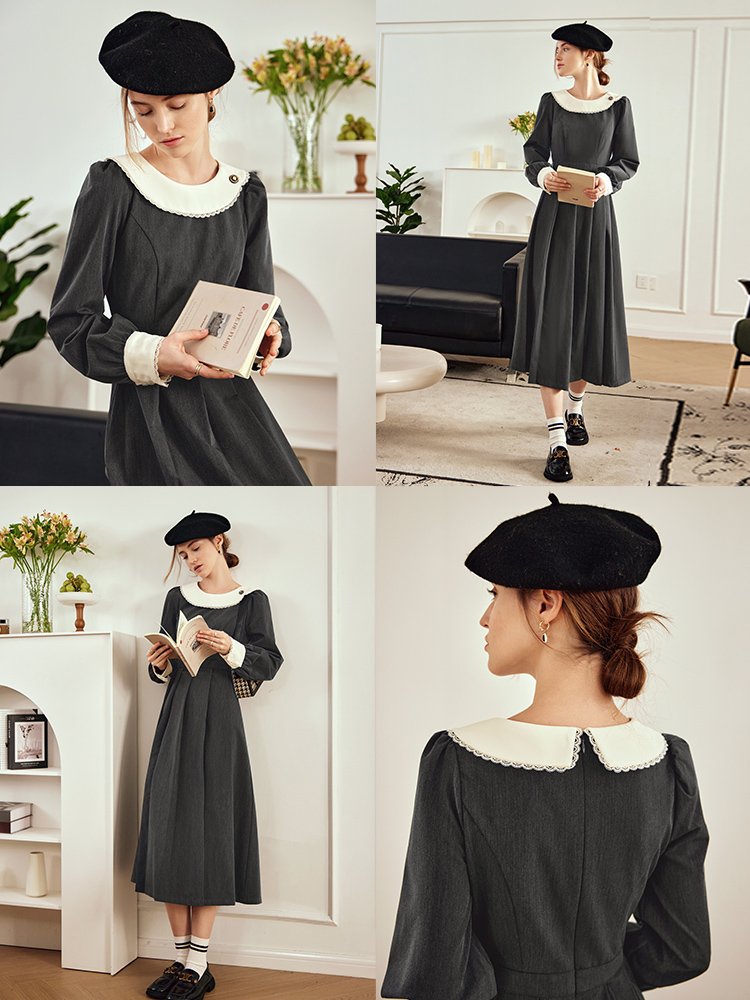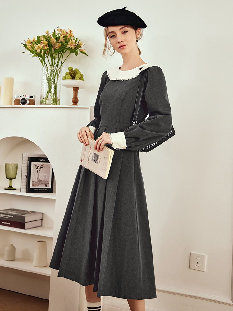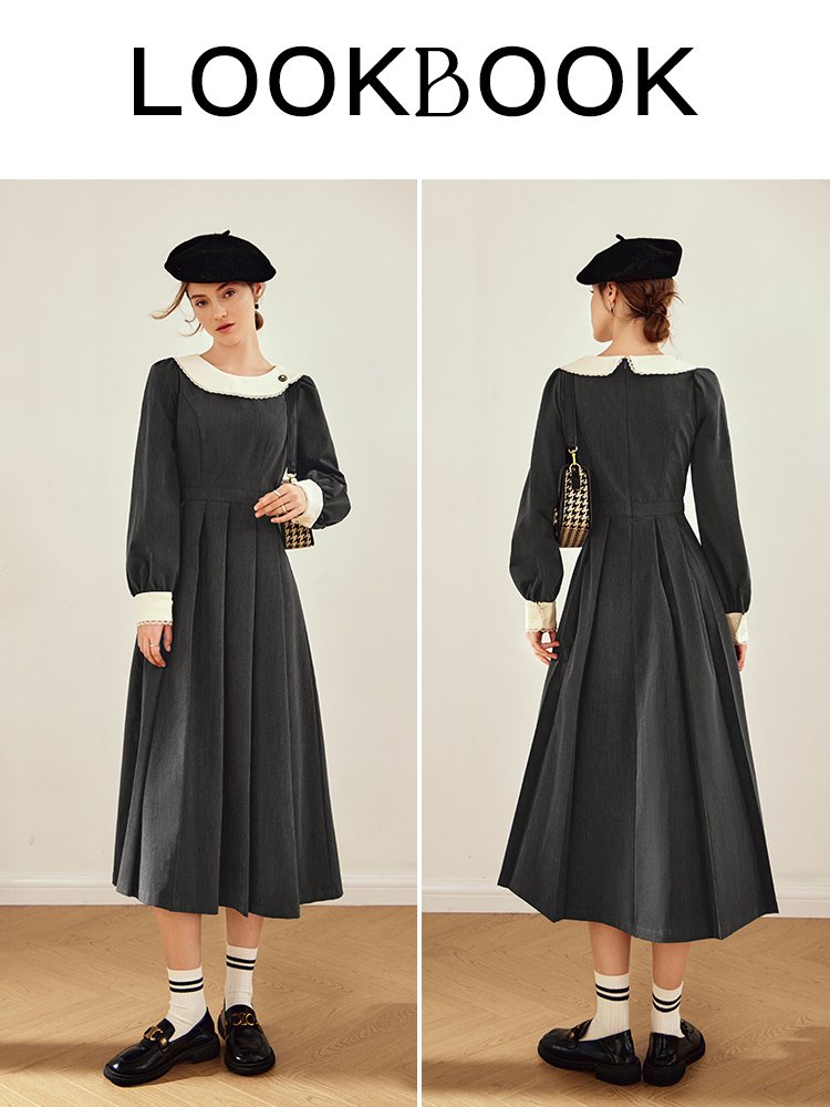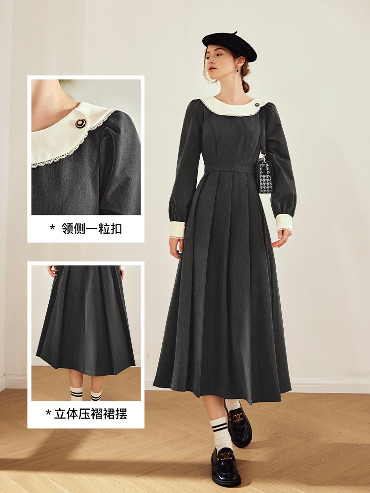 减龄优雅气质!法式娃娃领修身显瘦连衣裙