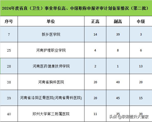 河南省2024年度省直(卫生)事业单位高、中级职称评审计划(第二批)已公示! #
