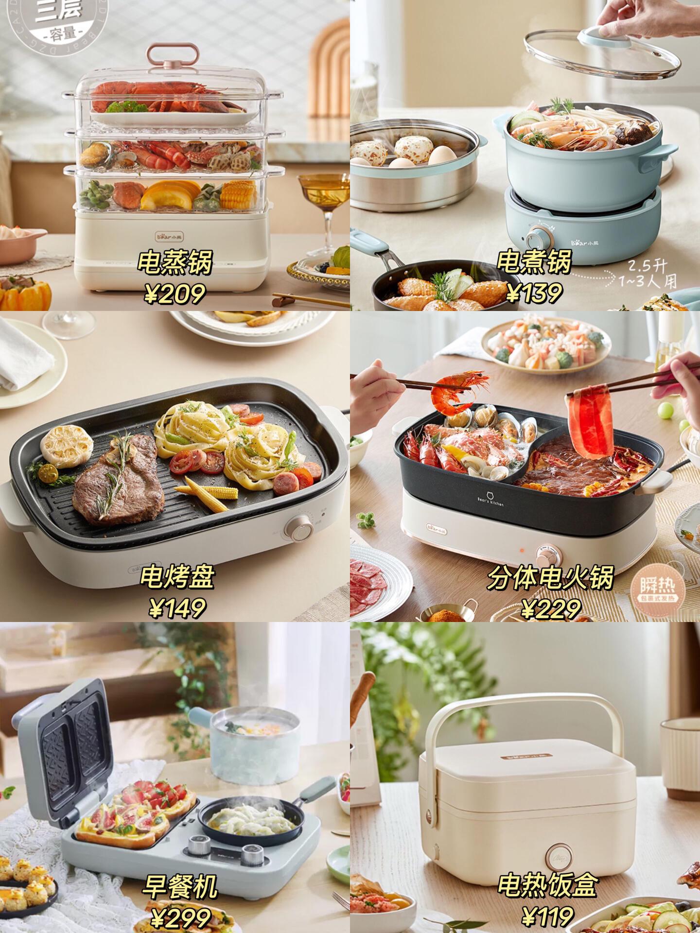 #采销直播5折家电又来了# 懒人必备小家电,提高生活幸福感,电煮锅、小蒸锅、三明