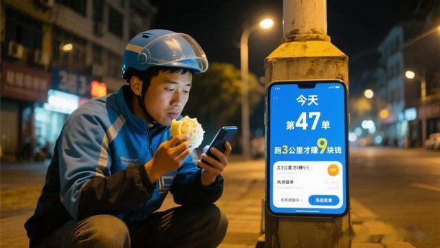 凌晨三点的县城街头,外卖员老王蹲在路灯下啃冷馒头,手机屏幕蓝光映着他蜡黄的脸——今天第47单,跑3公里才赚9块钱,系统还在催单。