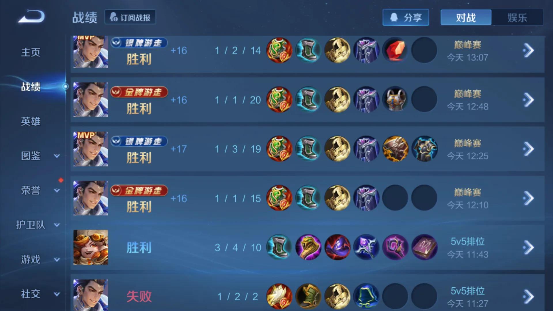 在战绩页面的对位数据中,可以看到游走英雄的核心数据对比情况,提高对应类型的数据表现,就能得到更高的评分。