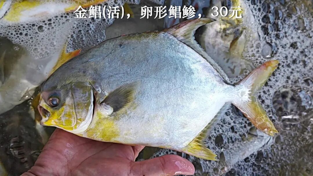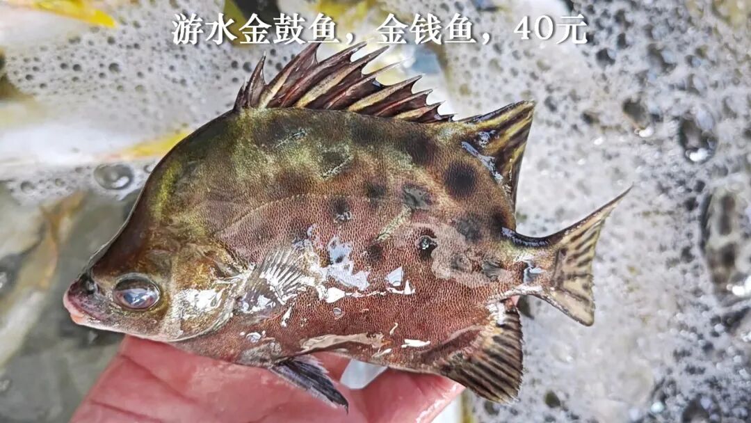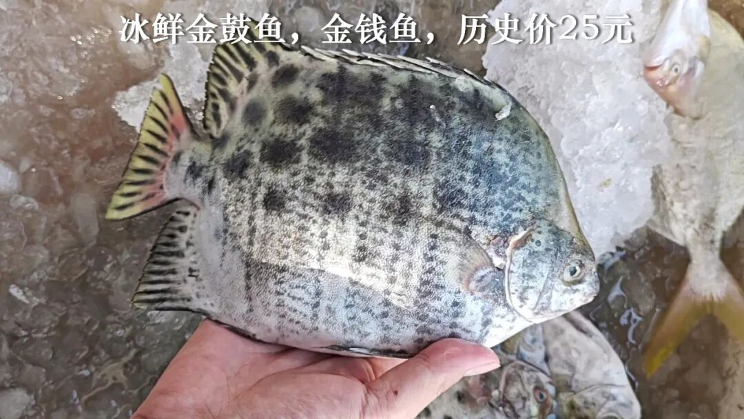 九、金鼓鱼,金钱鱼,游水40元/斤,冰鲜25/斤(历史价格)。